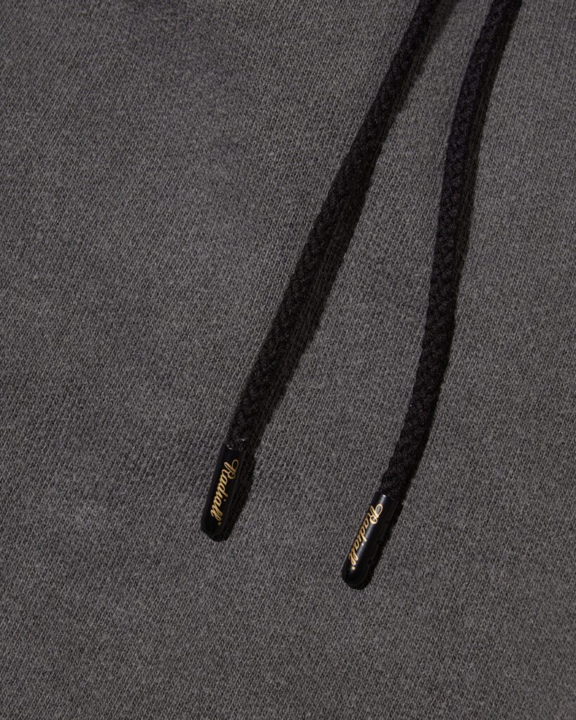 型崩れが少なく着心地の良さとハリコシが特徴のオリジナルのコットンインレイにピグメント染後にハードウォッシュを施してフェードカラーに仕上げた。