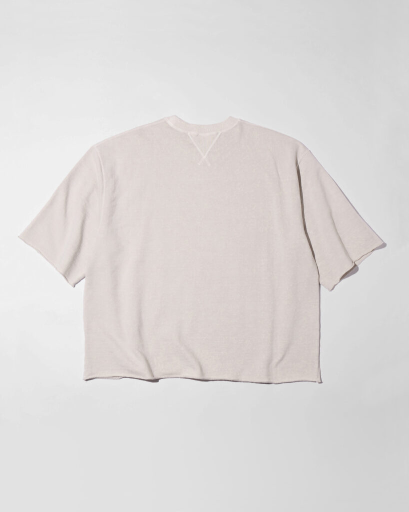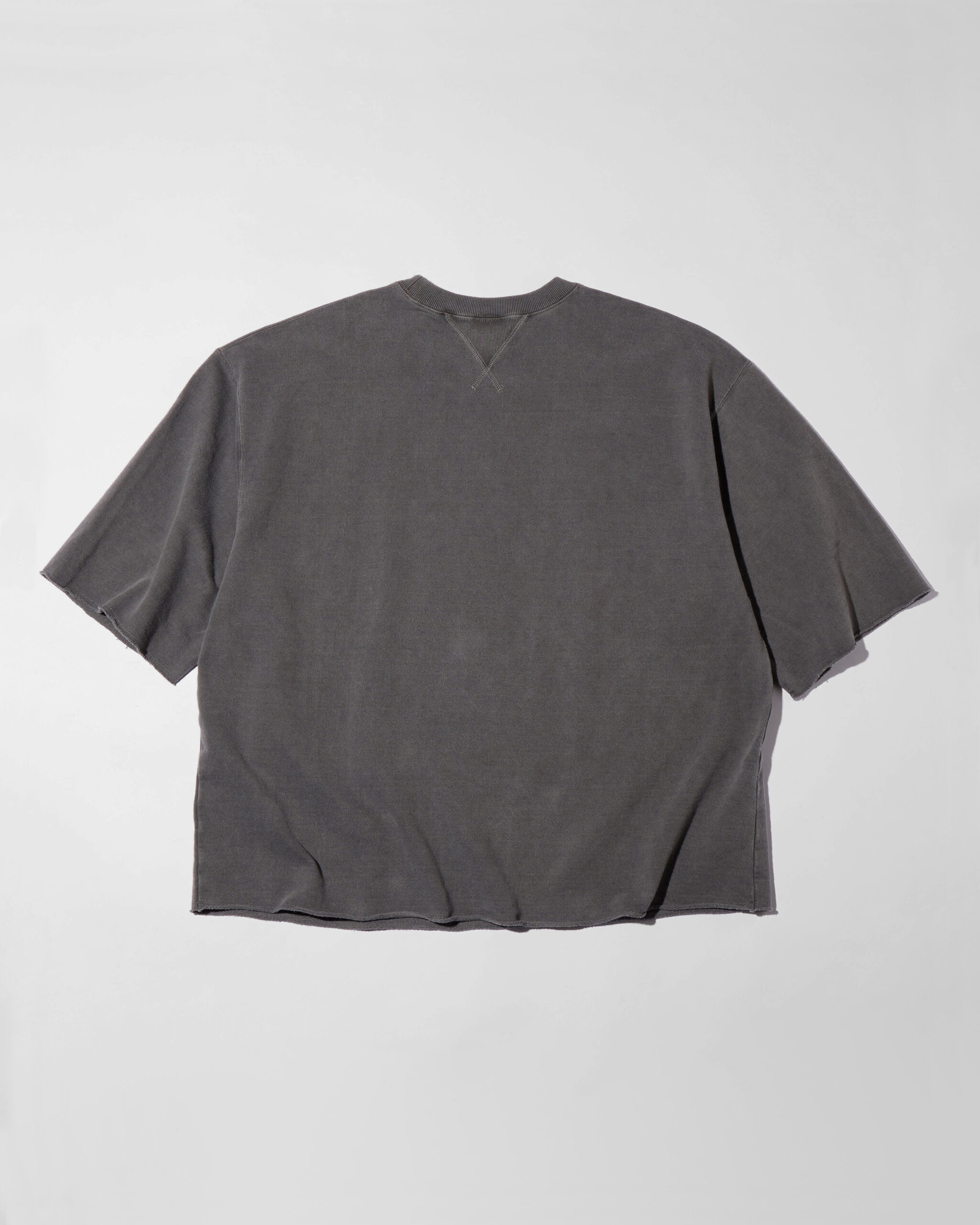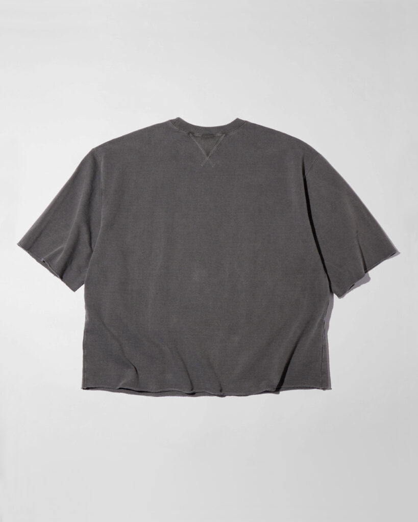 袖口と裾口はカットオフ仕様で、前後首周りにVガゼットが入る。