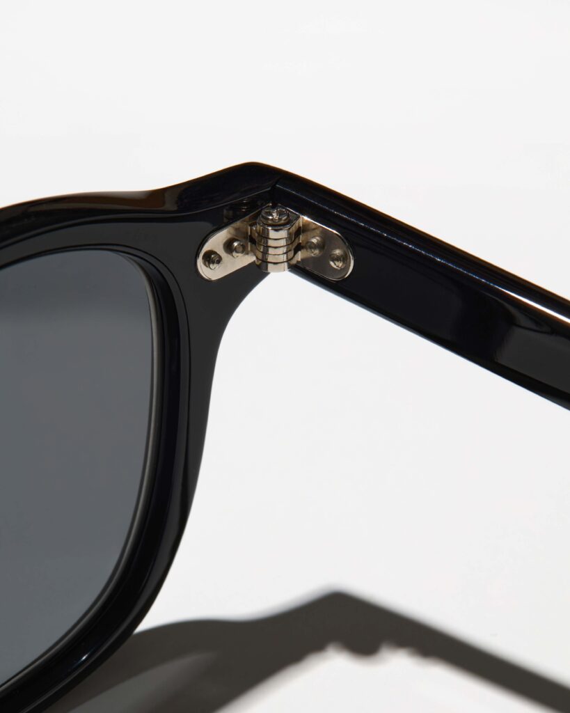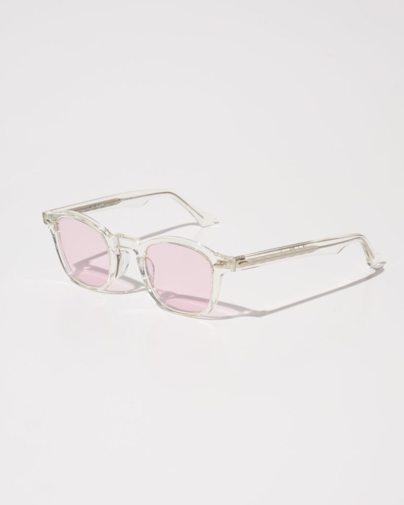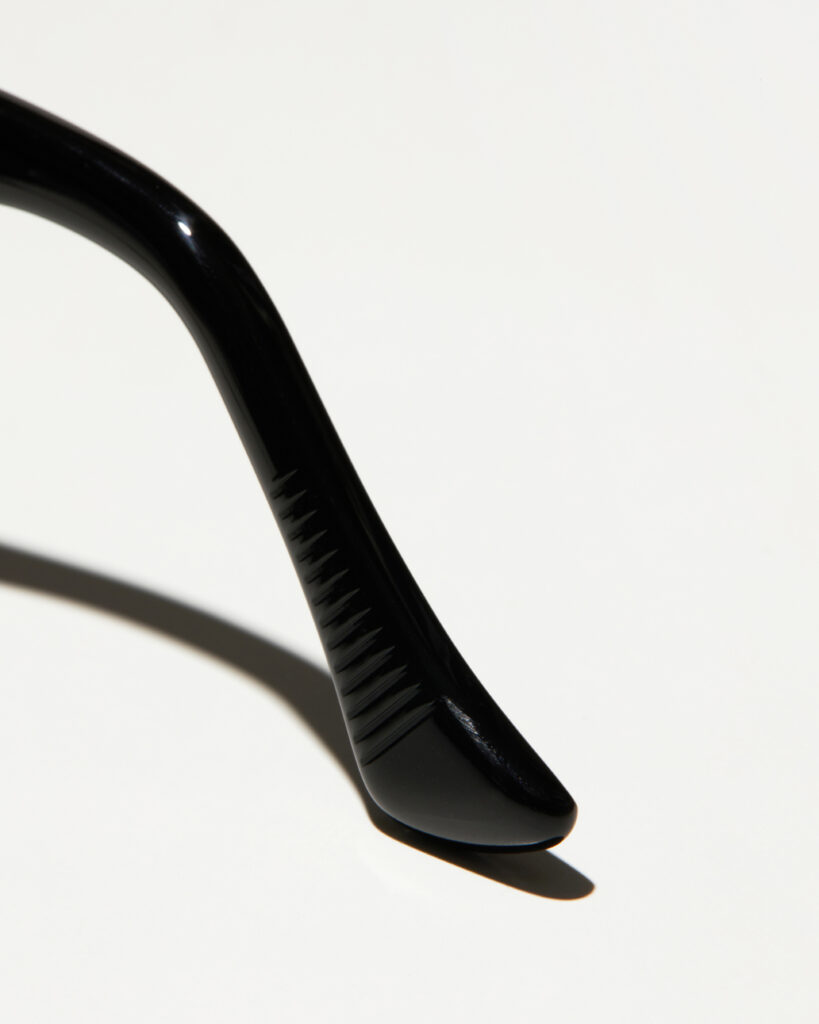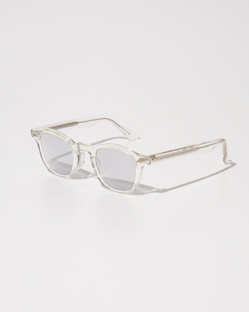 クラシカルなディテールのキーホールブリッジ(顔が立体的に見える効果も)、東洋人に合わせた大きめのノーズパッド、テンプルエンドには溝を入れ滑り止め仕様にしています。