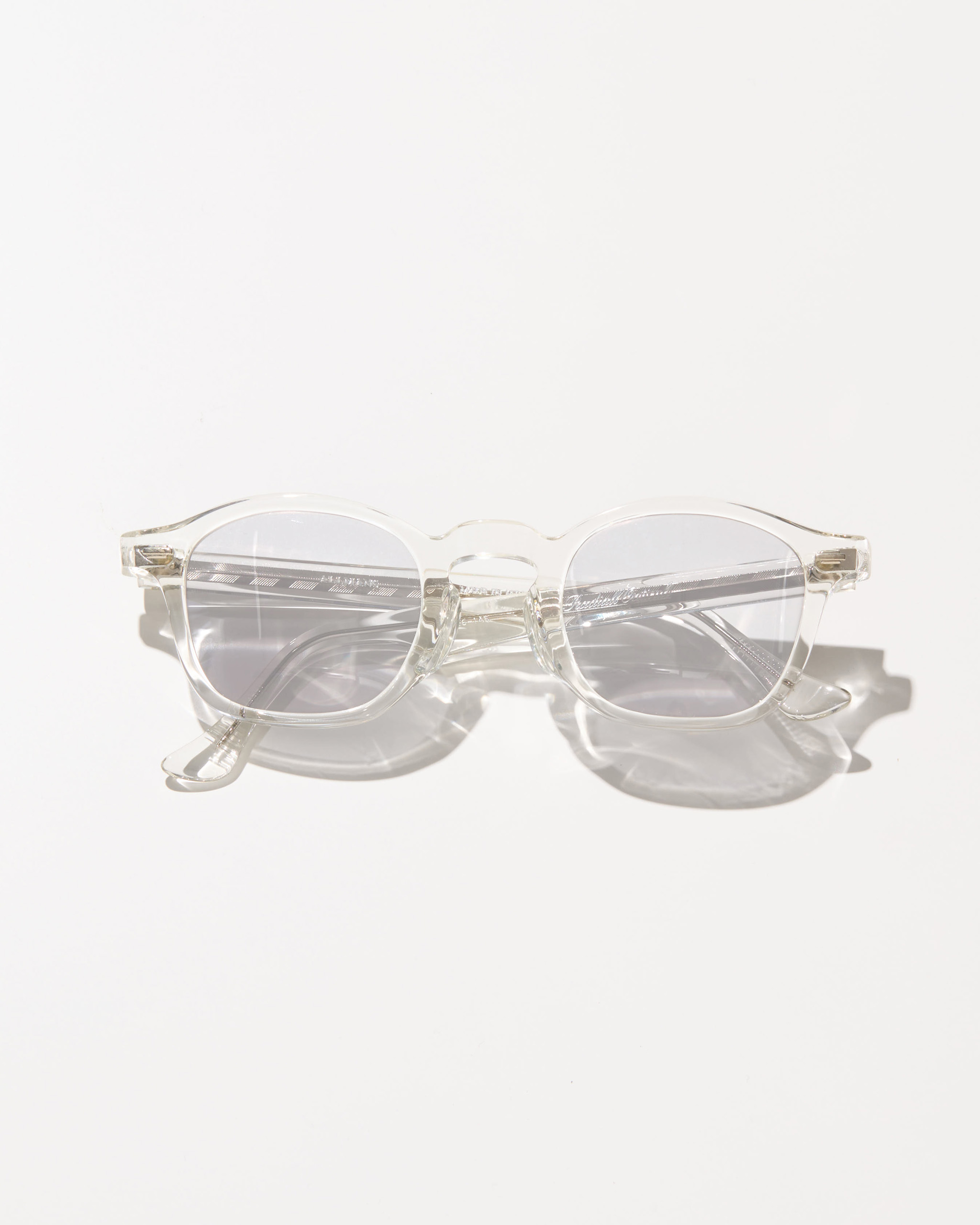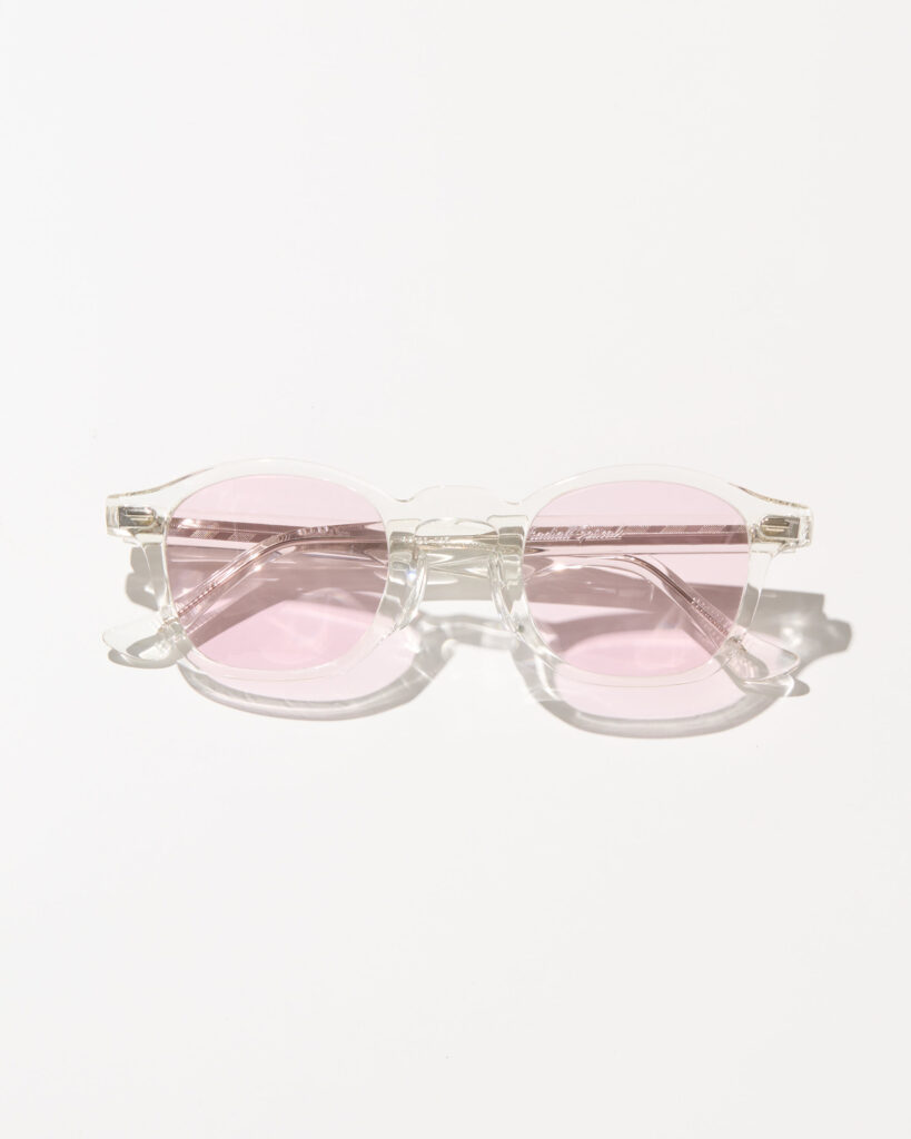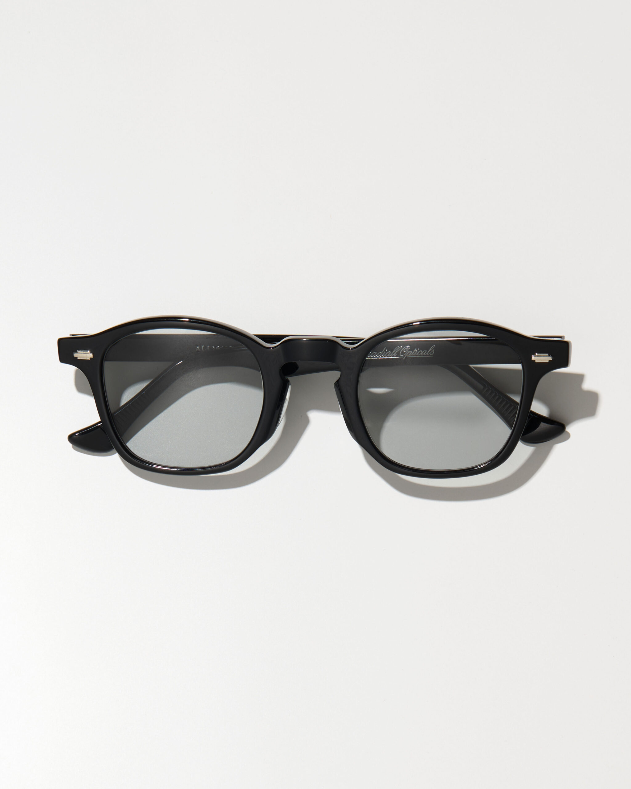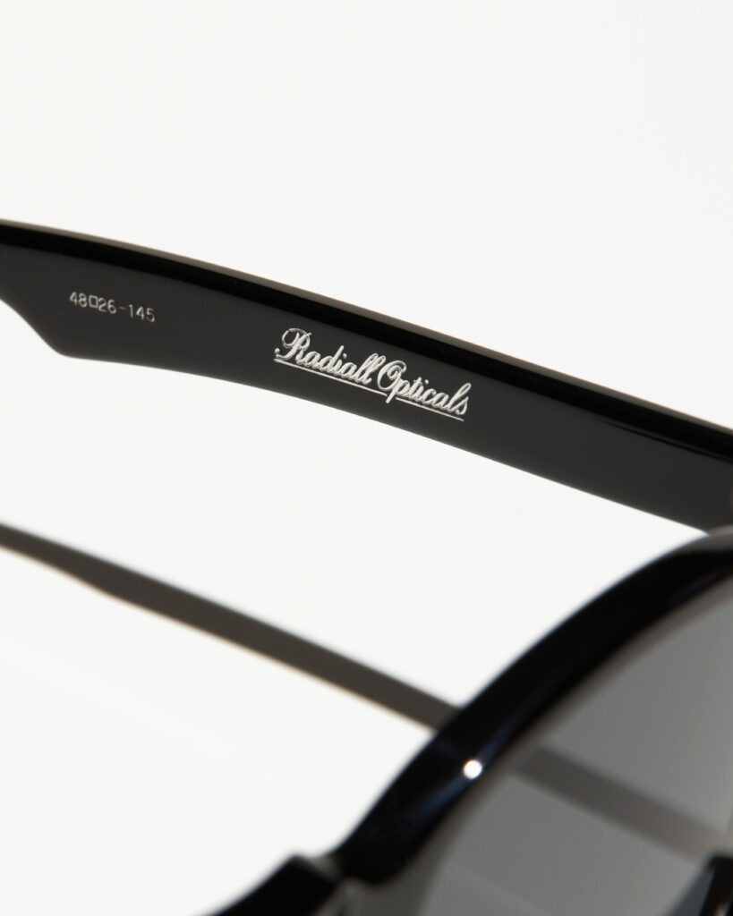左テンプルに「Radiall Opticals」と「サイズスペック」、右テンプルに「アイテム名」が箔押しで刻印。MADE IN JAPAN、且つハンドメイドで1本1本丁寧いに作られています。