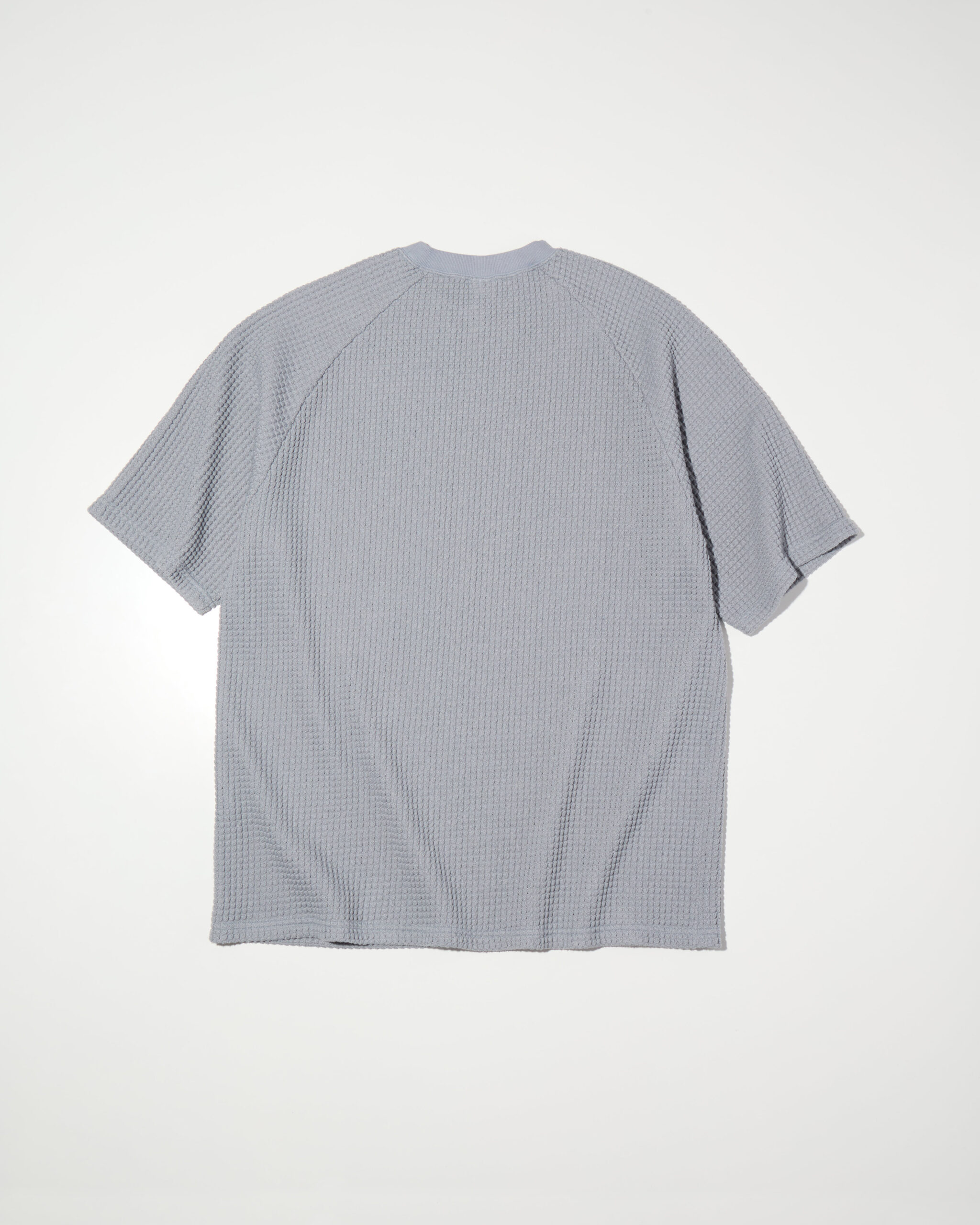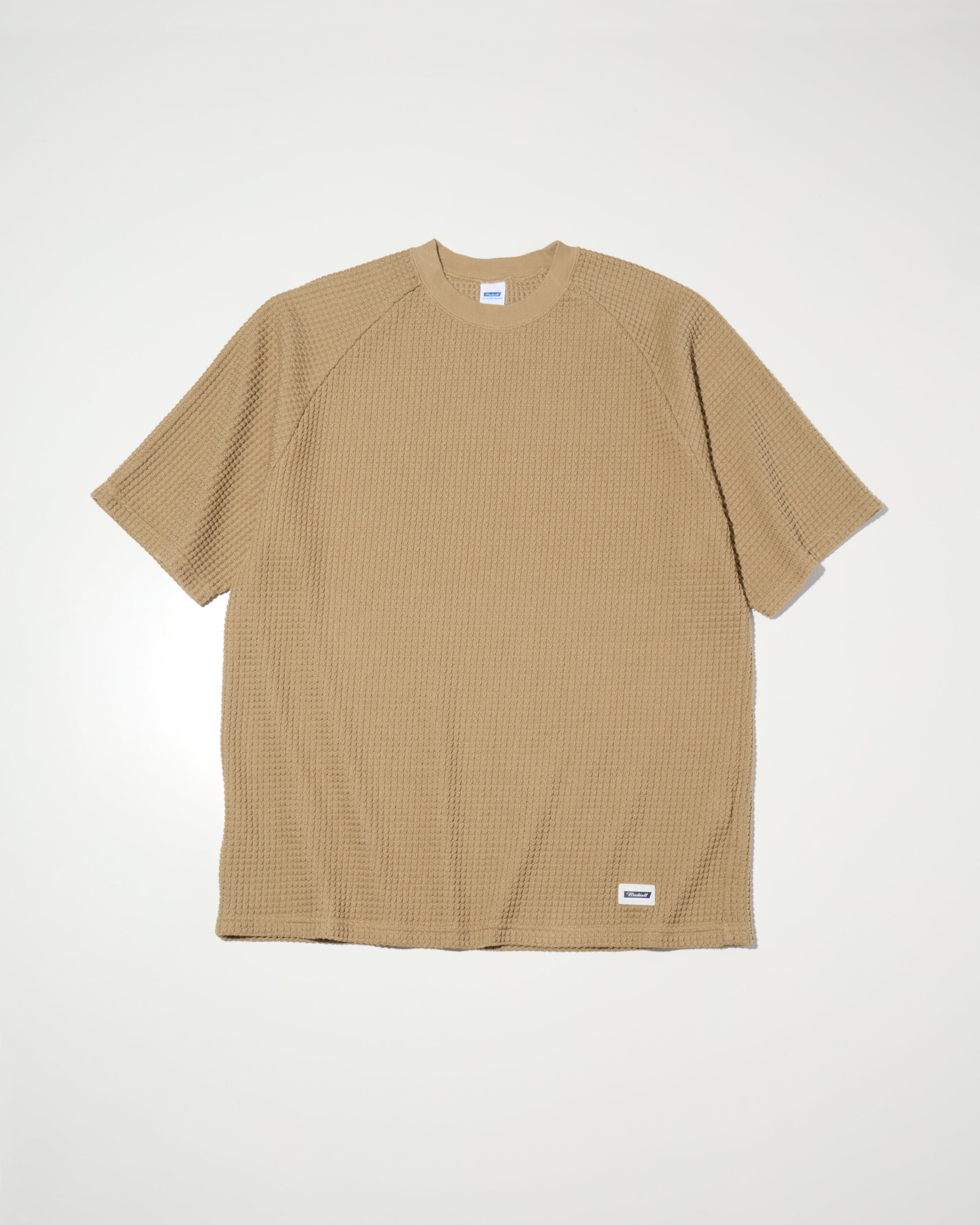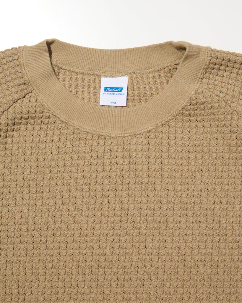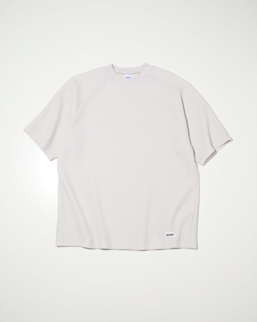堅牢性と発色の良いT/Cの糸で編み上げたワッフル生地を使用したクルーネックシャツ。