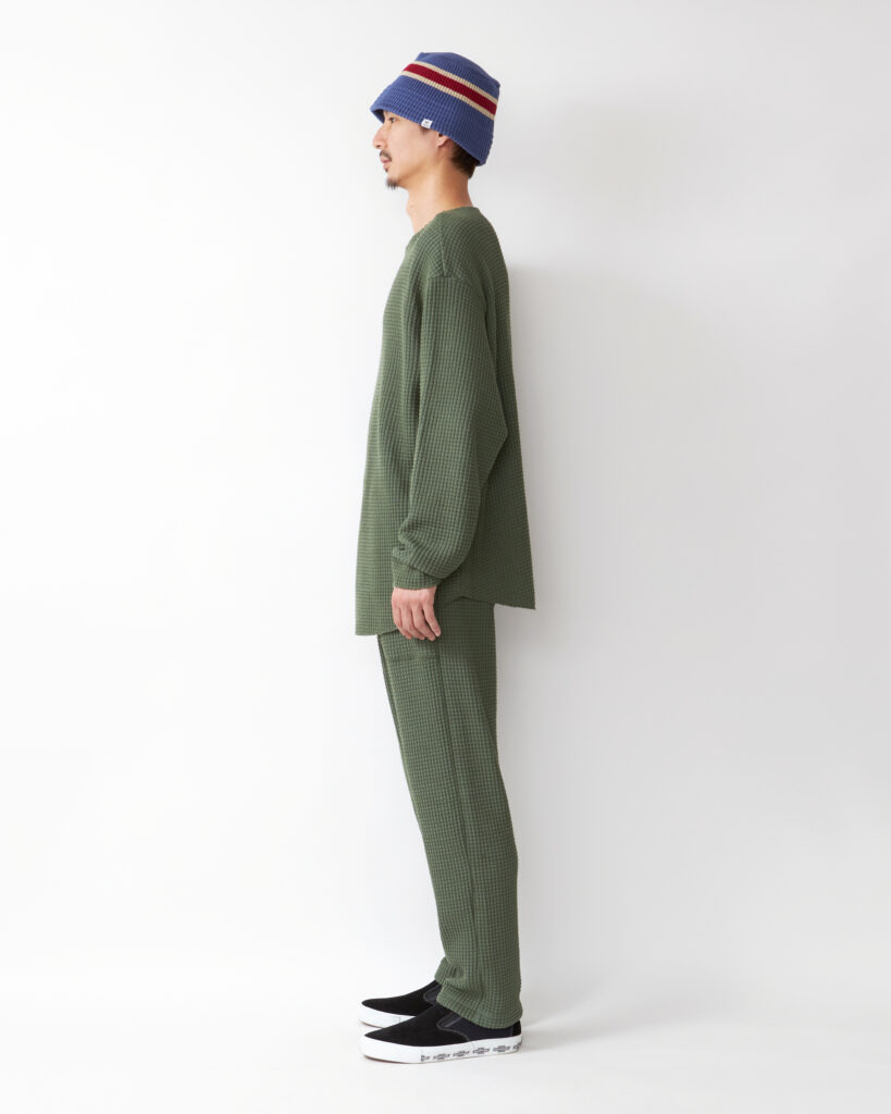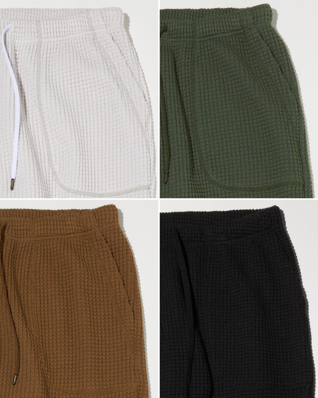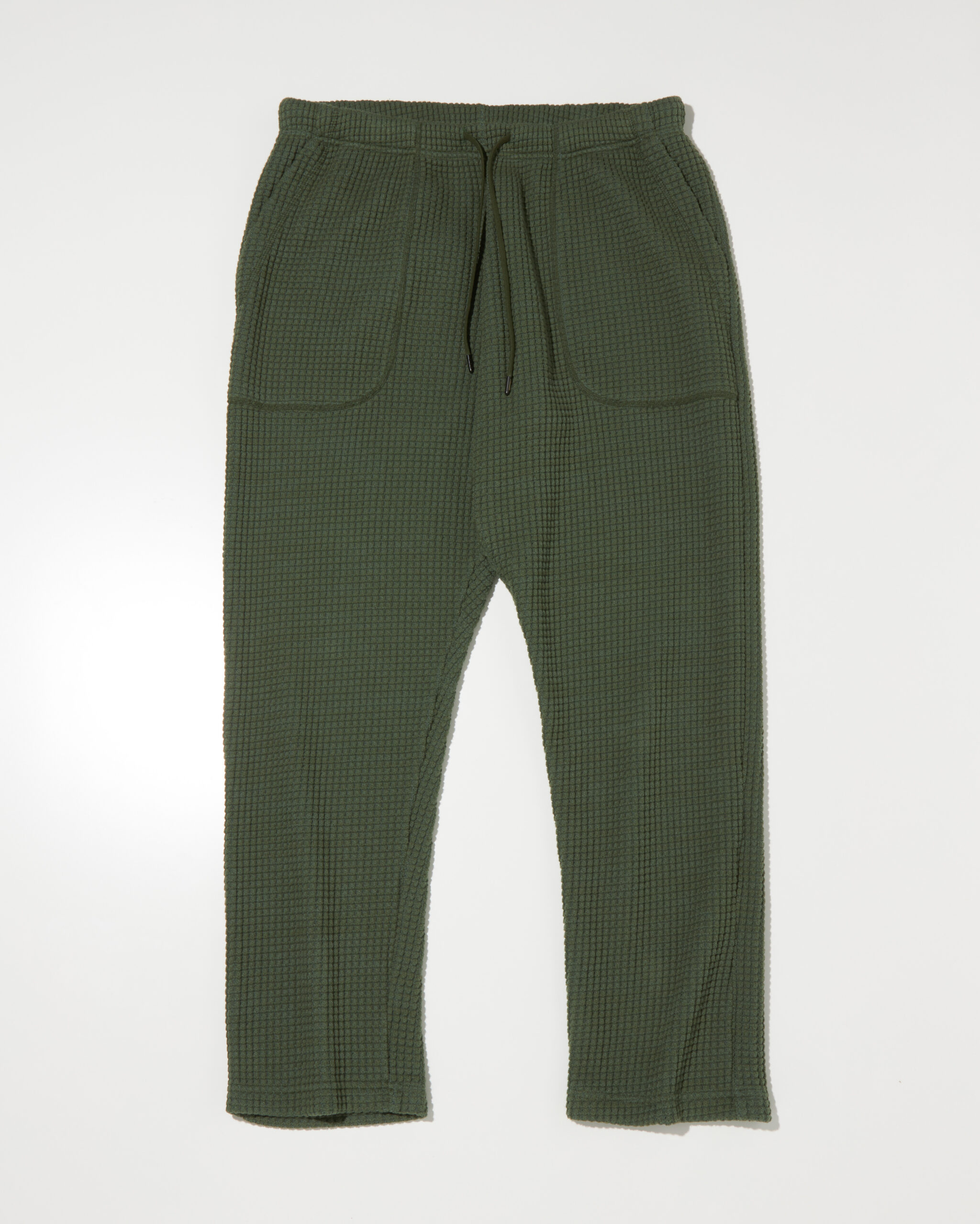 堅牢性と発色の良いT/Cの糸でざっくりと編み上げたワッフル生地を使用した定番のスウェットパンツです。