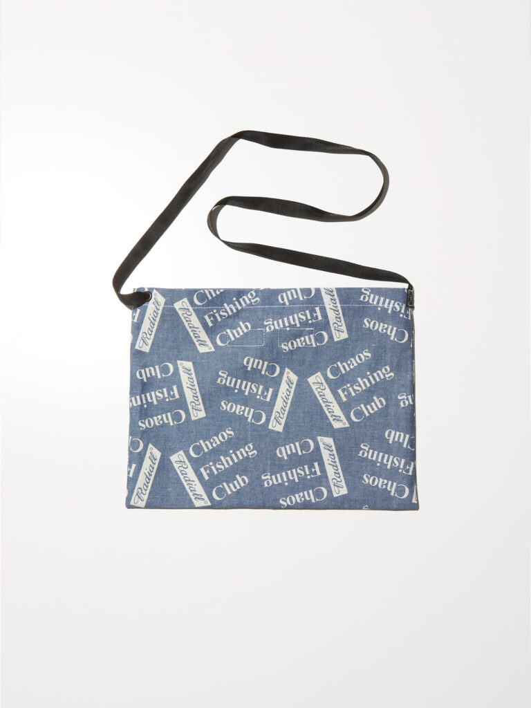 CHAOS FISHING CLUBと初のコラボレートをした時のアーカイブファブリック(抜染ロゴ総柄シャンブレー)を使用したサコッシュバッグ。
