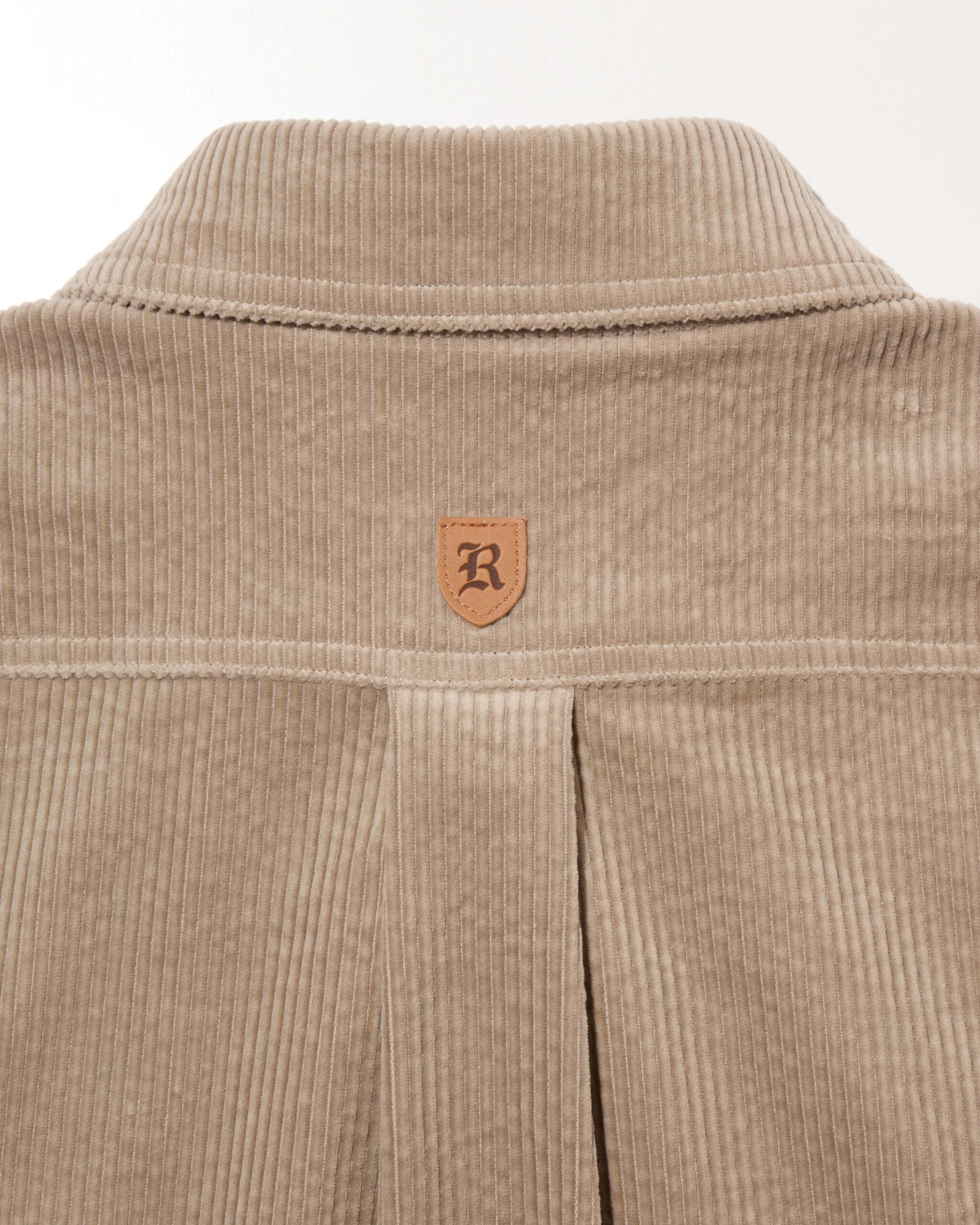 左胸ポケットにウォッシャブルレザーピスネーム、背面ヨークにウォッシャブルレザーパッチ付き。