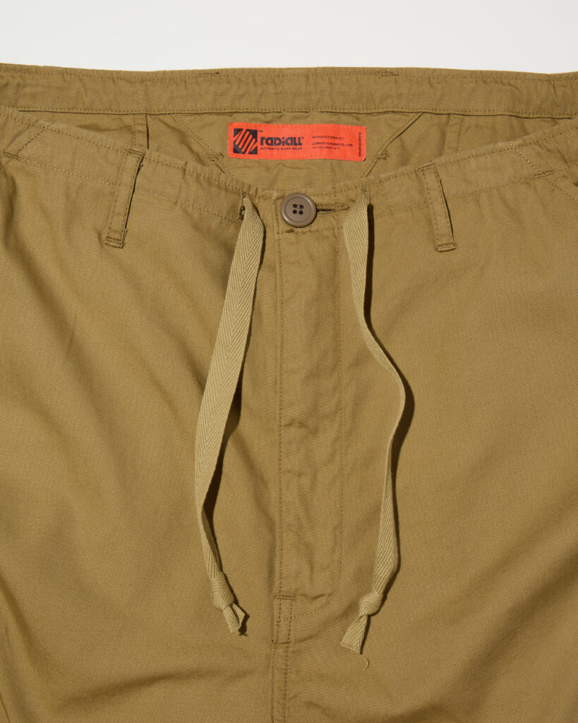ウェストはベルトループに加えて、アシストでコットンヘリンボンのミリタリーテープをスピンドルとして使用。
