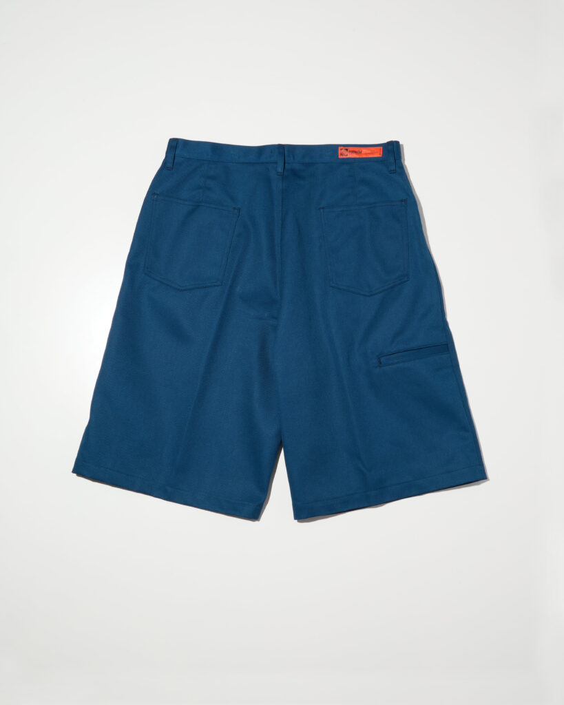 西海岸カルチャーの重要なアイコンの一つである膝下丈のショーツをソースとしてパターンを作った。