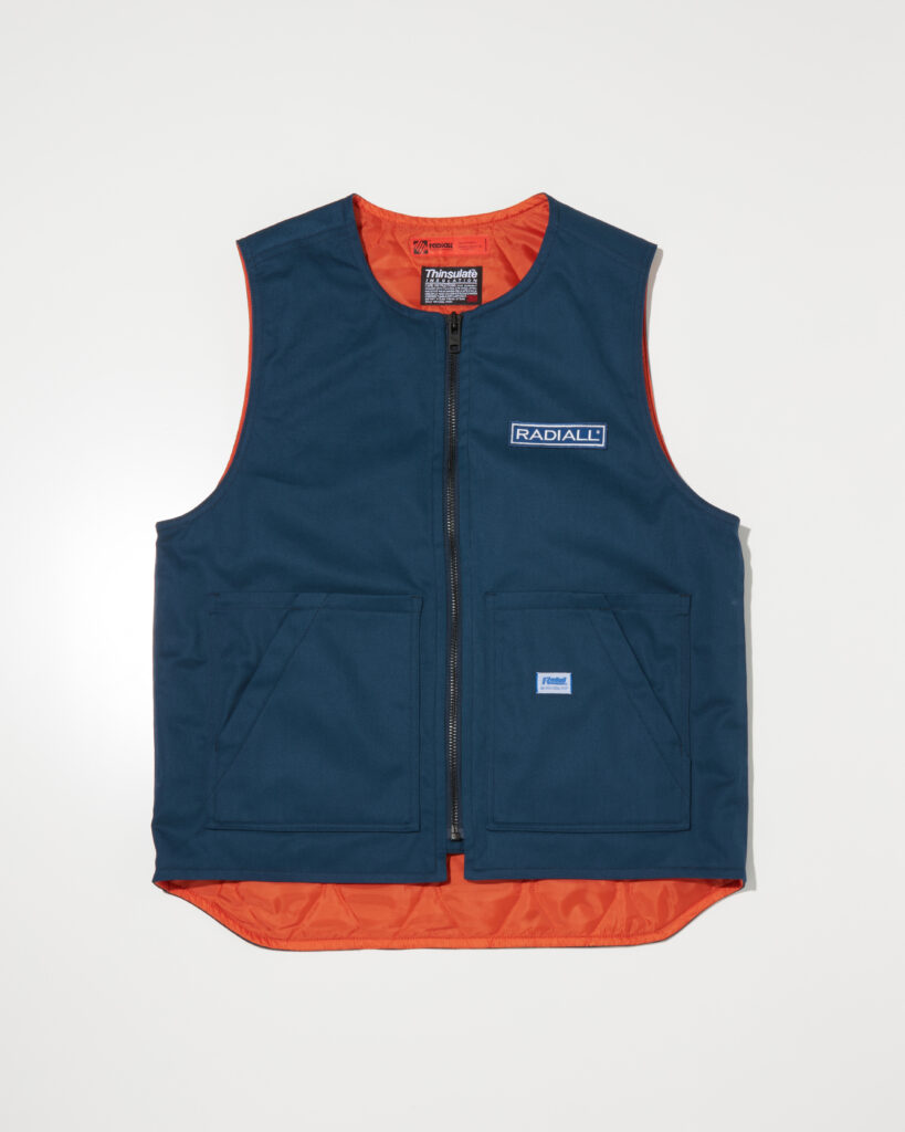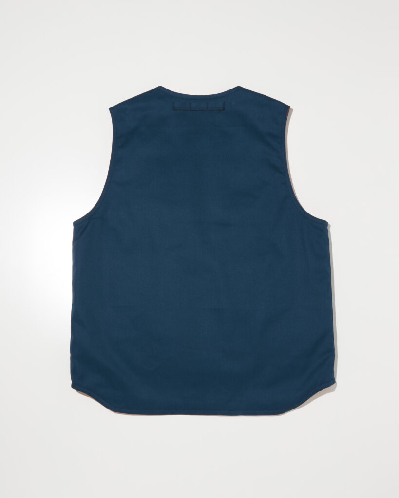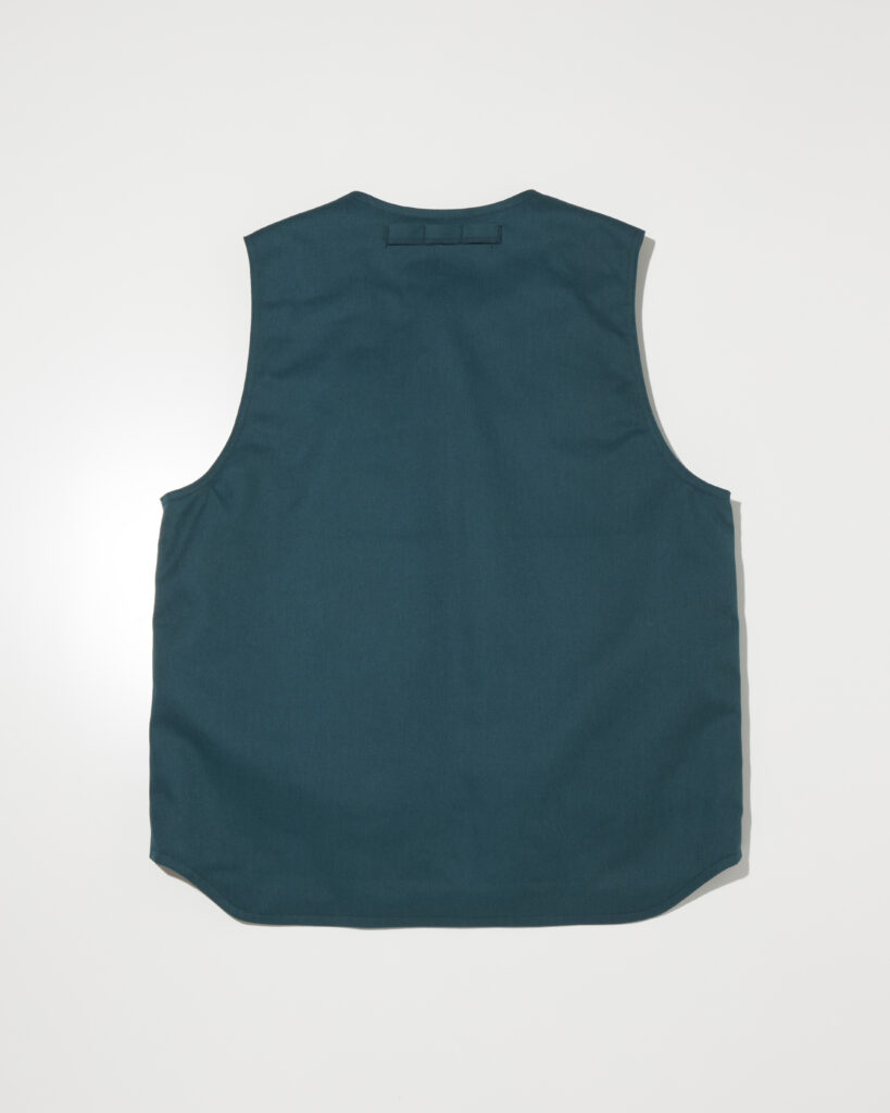 デザイナー自身が愛用するパンツにも使用される丈夫で軽いT/Cツイル素材を使用した中綿入りのベストです。