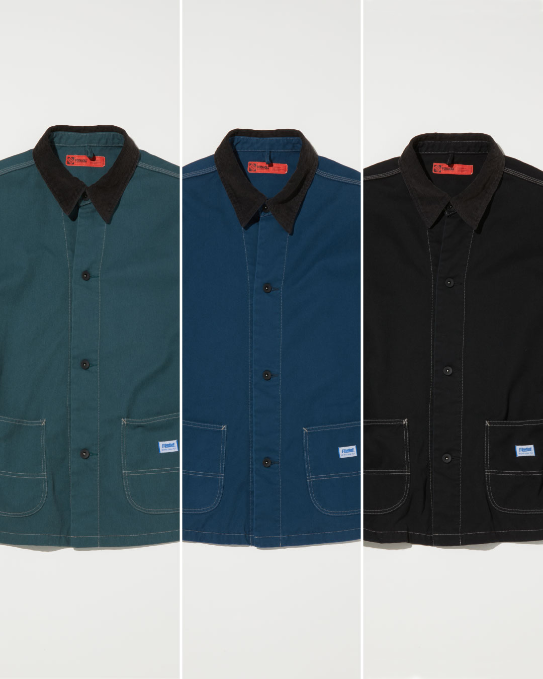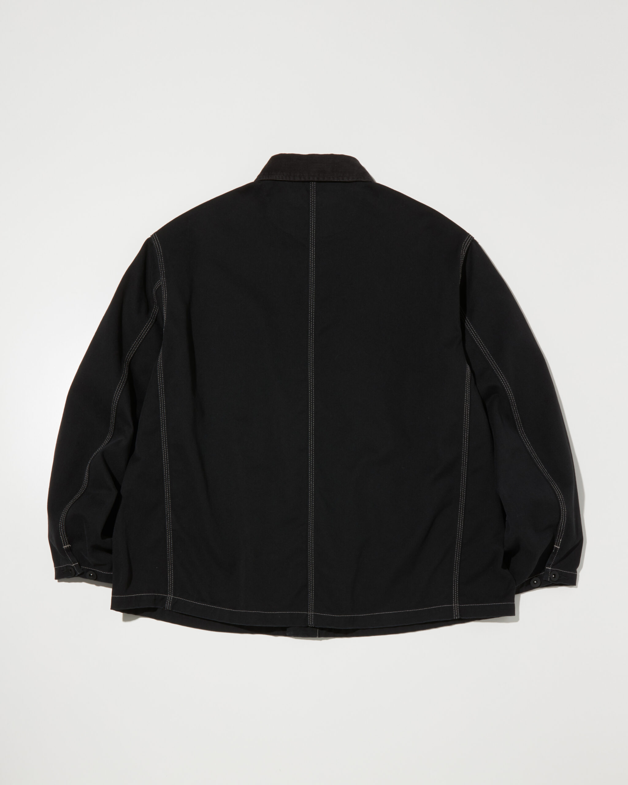 ジップを開けた状態でも首元が立体的できれいに見える台襟付きで襟にはコーデュロイ素材を使用してアクセントを加えております。