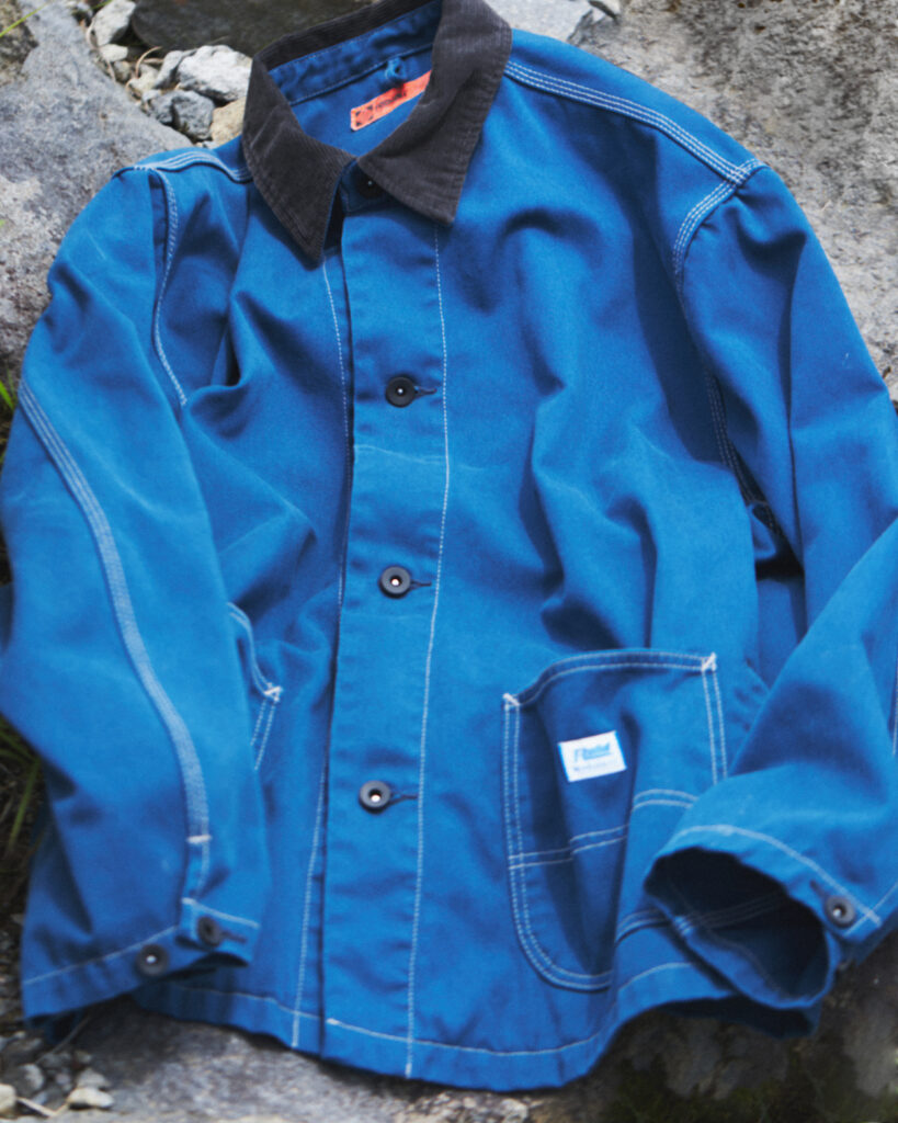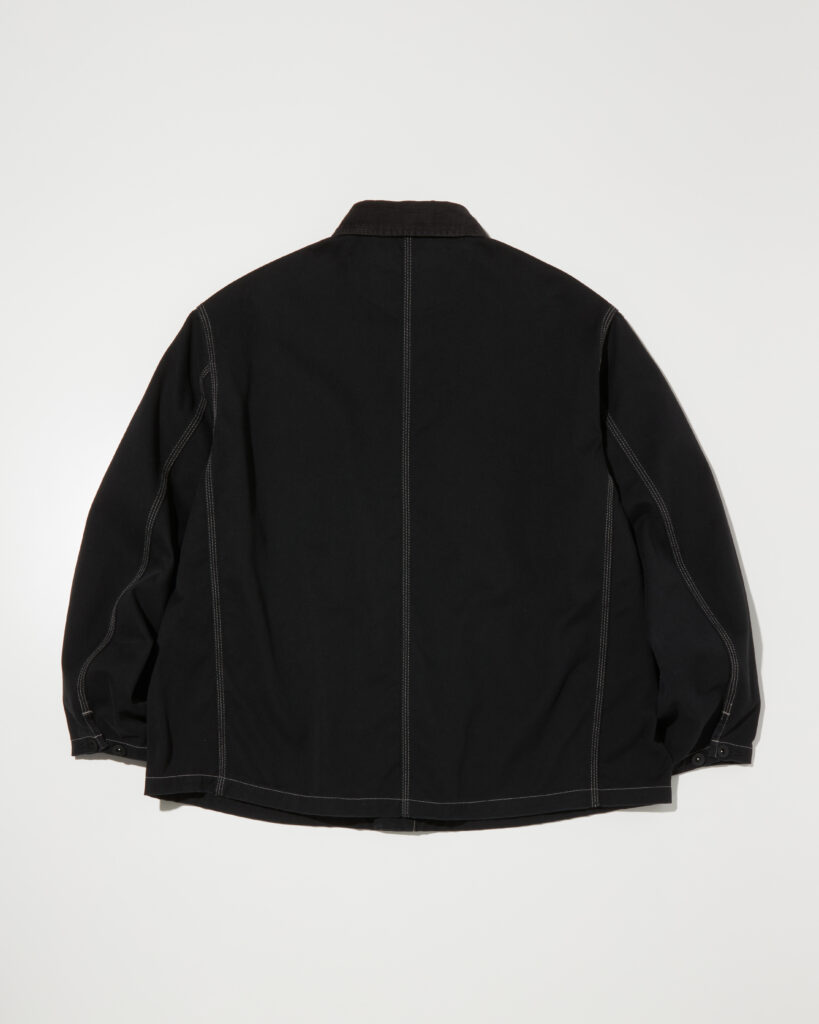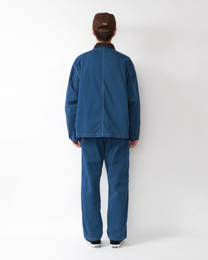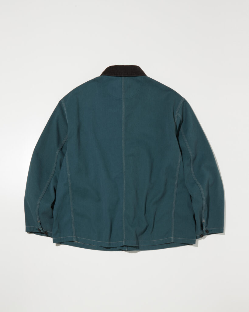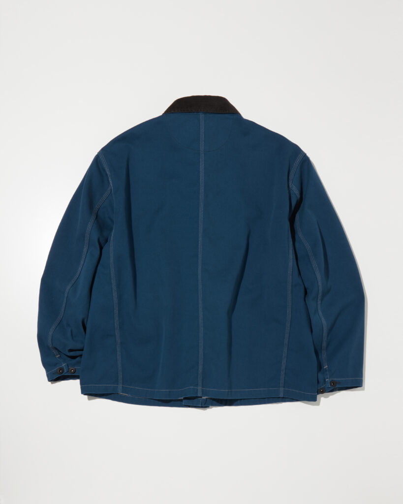 デザイナー自身が愛用するパンツにも使用されているオリジナルの丈夫で軽いT/Cツイルを使用したボックスシルエットのカバーオールです。