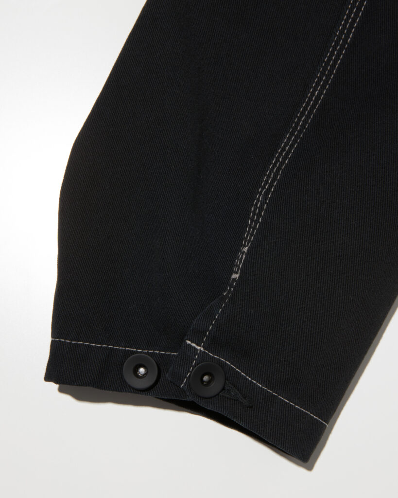 裾口はタックボタンでアジャスタブルな仕様を採用。