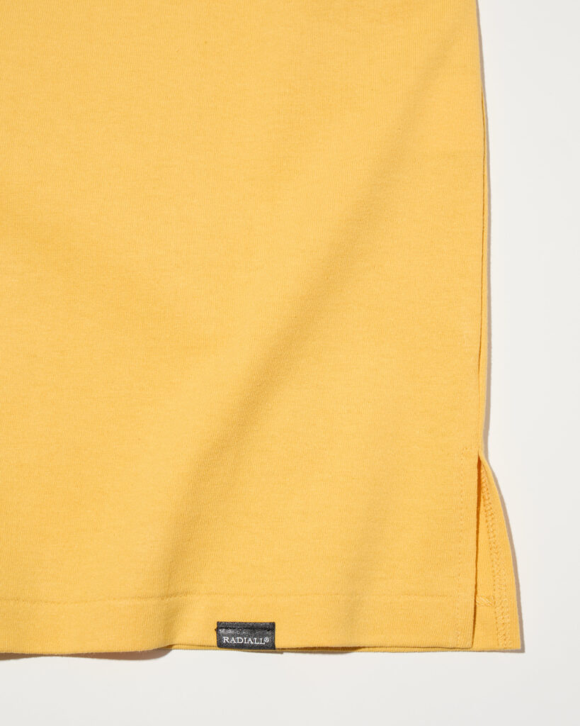 身頃脇にサイドスリットが入りブランドのピスネームが付く。