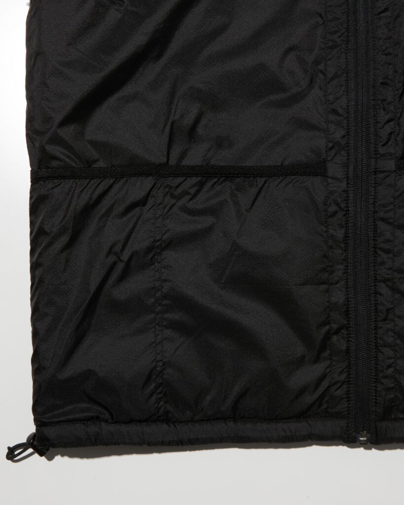 表生地は肌触りが心地よく暖かいフリースを採用し、裏生地には堅牢度の高いナイロンリップストップを使用しています。