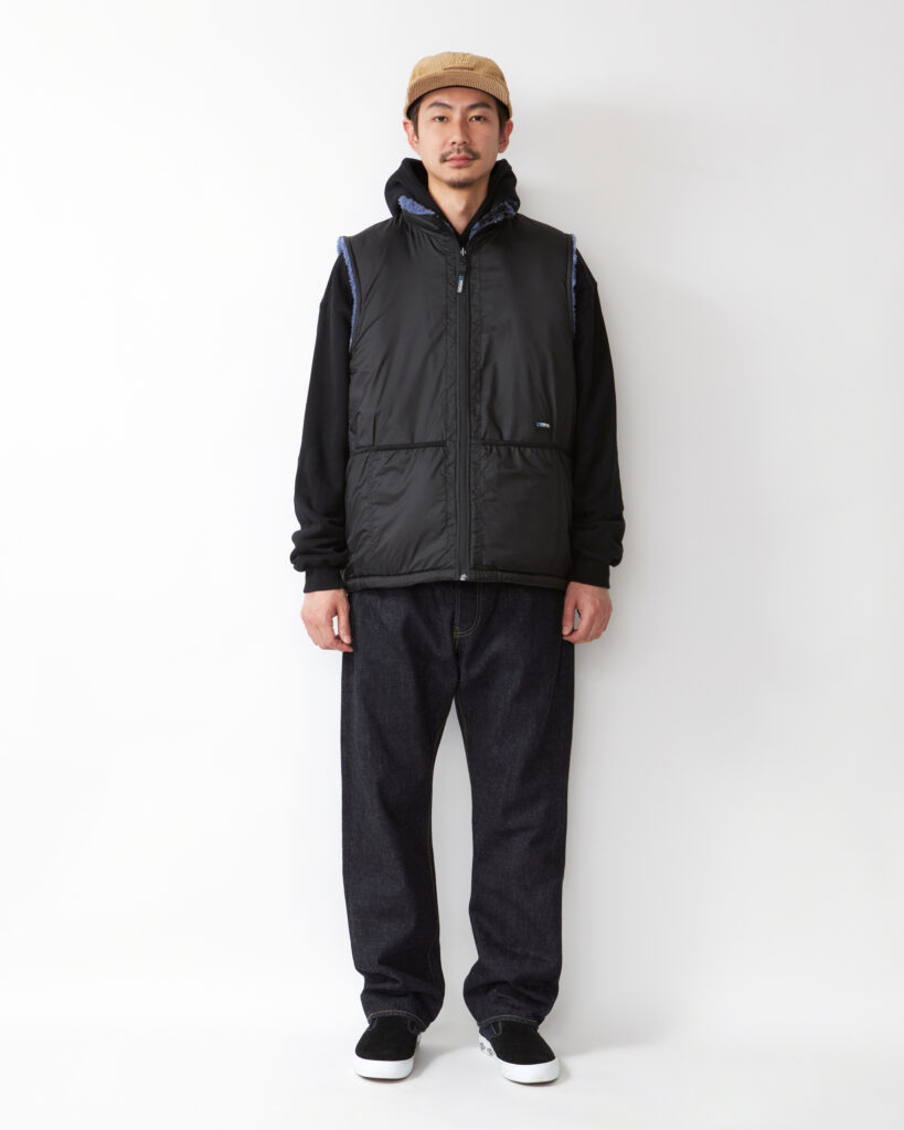 ビンテージフリースを模した毛足の長いフリース素材を使用したジャガードフリースのリバーシブルベストです。