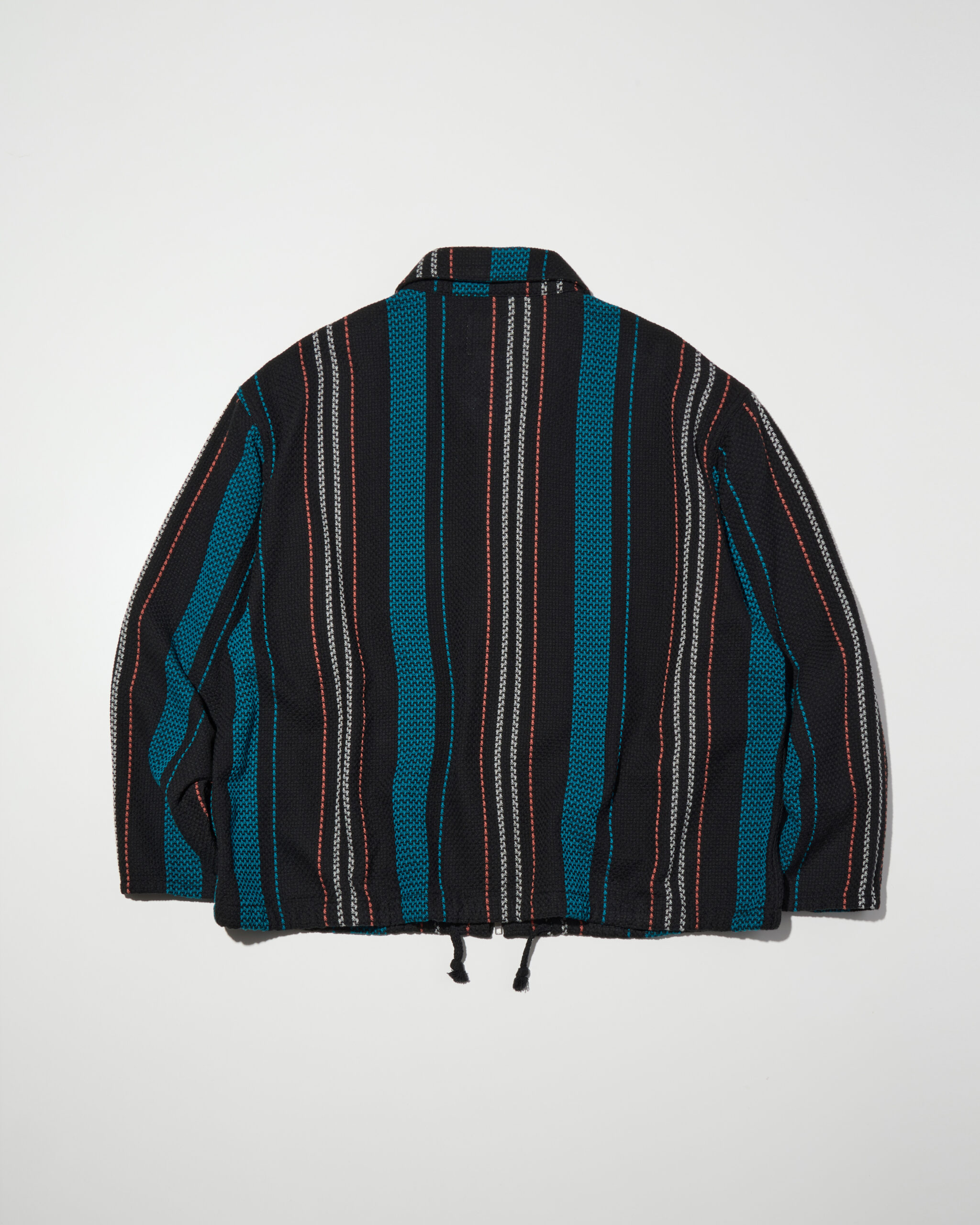 個性の強い柄なので、カフスや腰ベルトなどディテールをなるべく減らし、素朴な生地の風合いと合わせたシンプルなデザインとした。