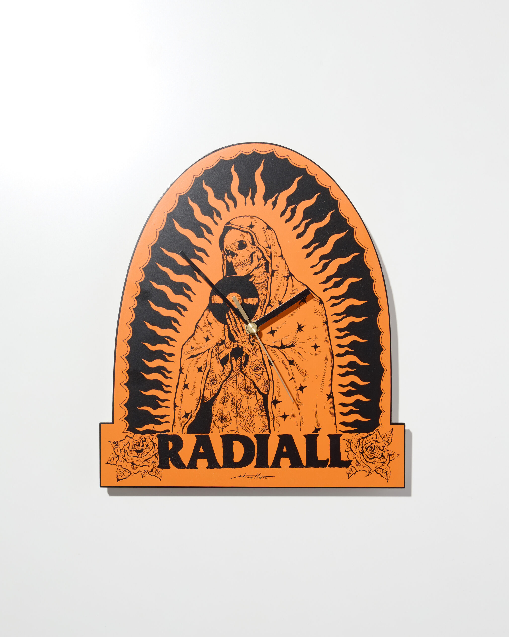 アーティストHIROTTON / ヒロットン氏による描き下ろしのグラフィックをMDF合板のウォールクロックに落とし込みました。