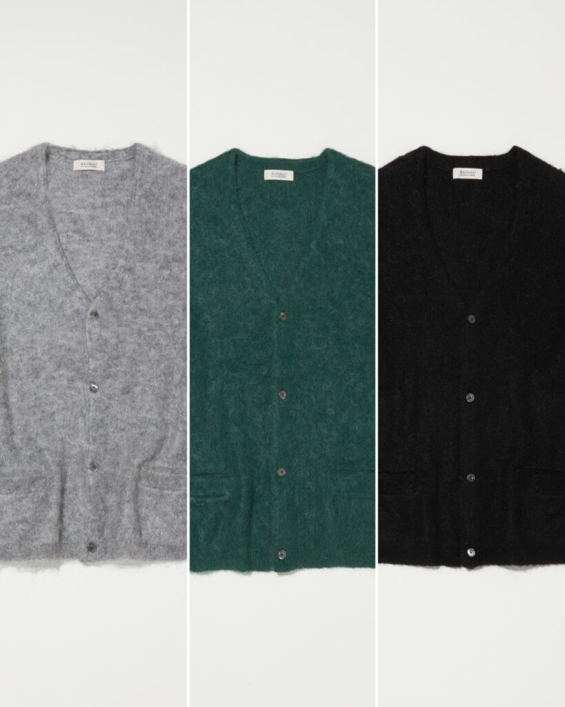 柔らかく膨らみがあり着心地の良いモヘアを使用したニットカーディガン。