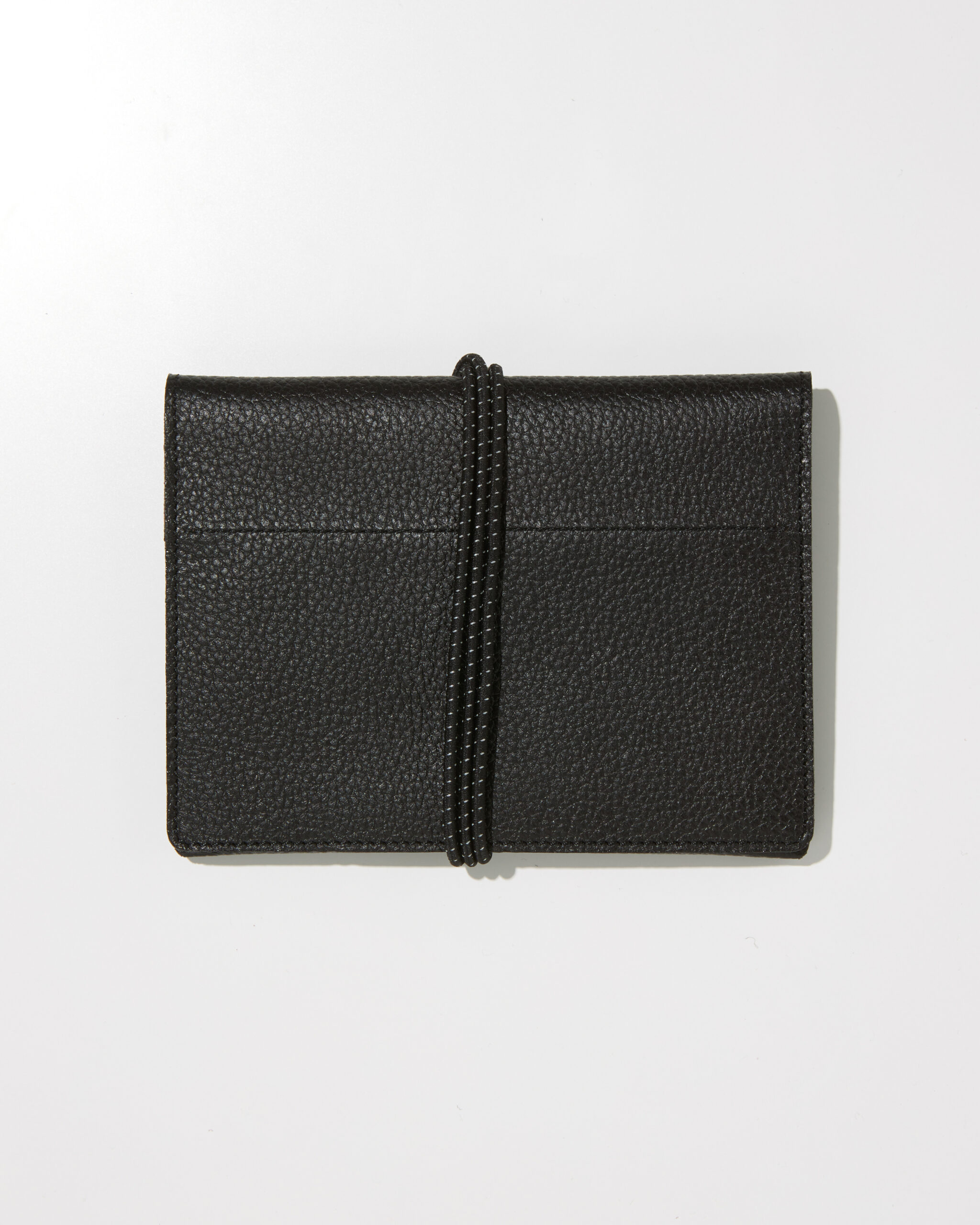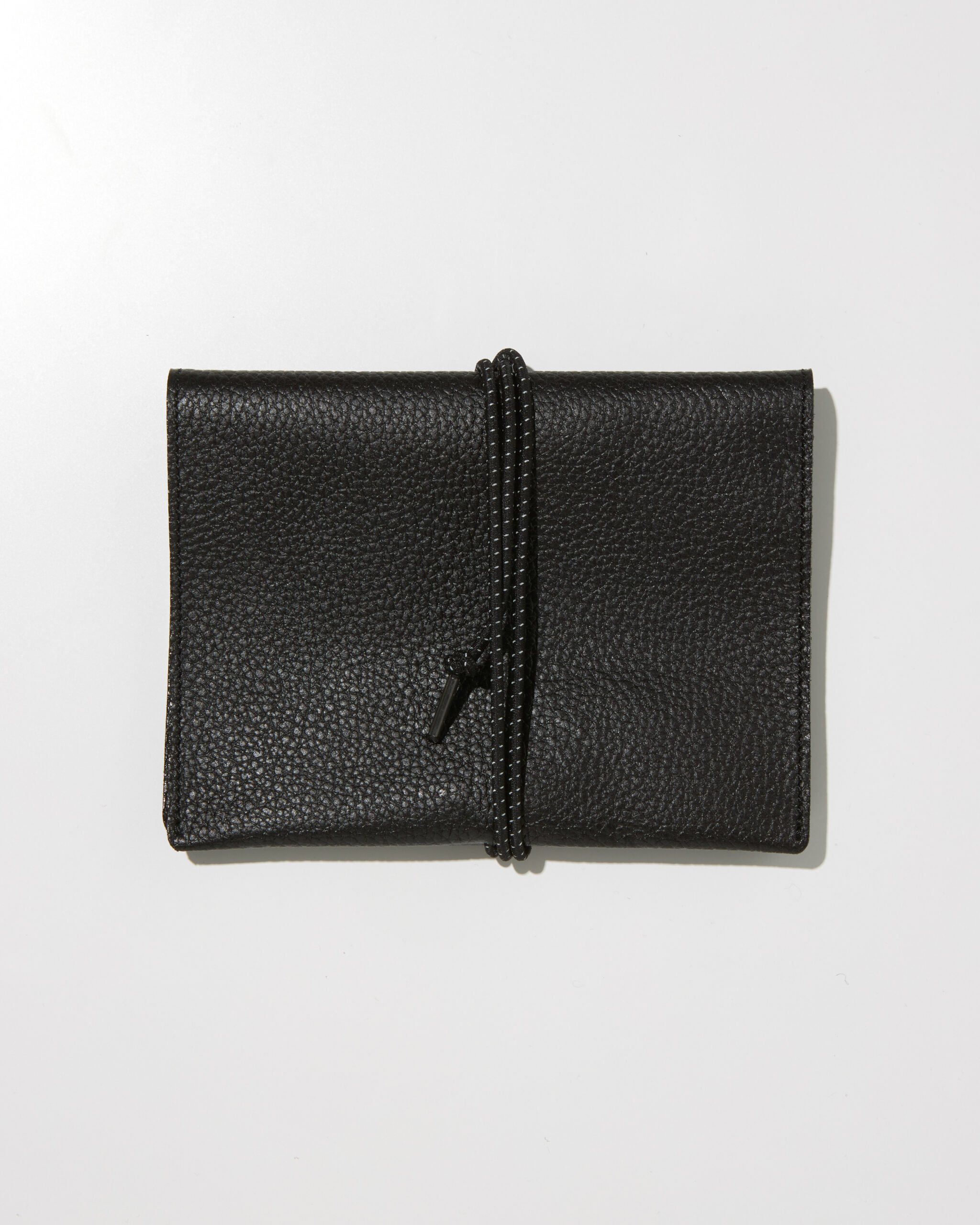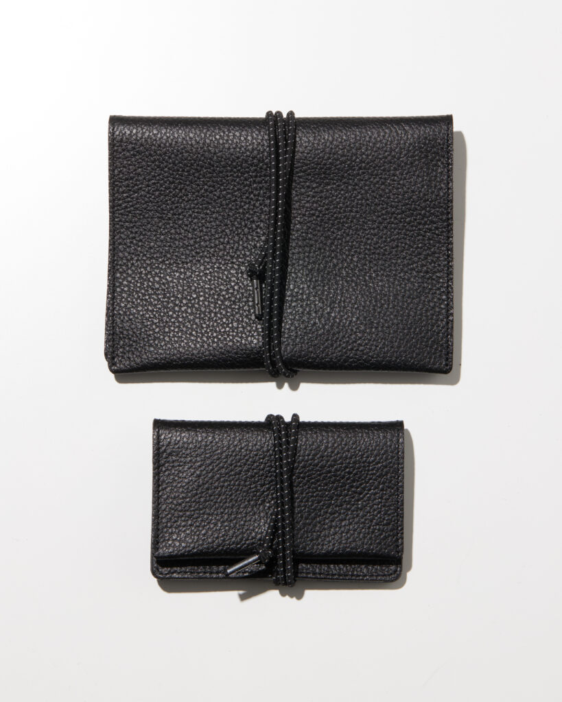 二つ折りを閉じる紐には、先端を金属チップ加工を施したリフレクターゴムコードを装備。