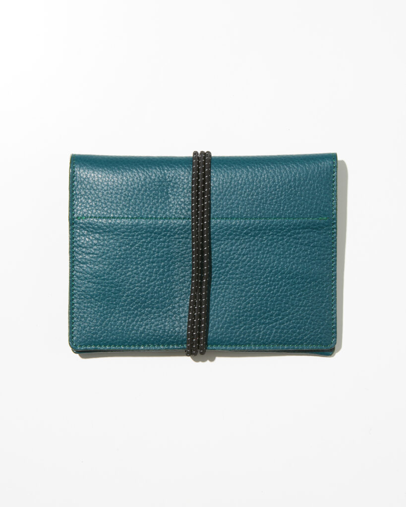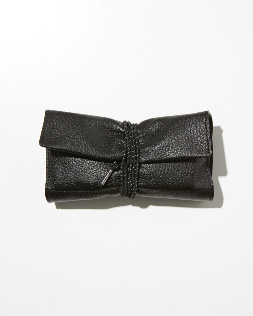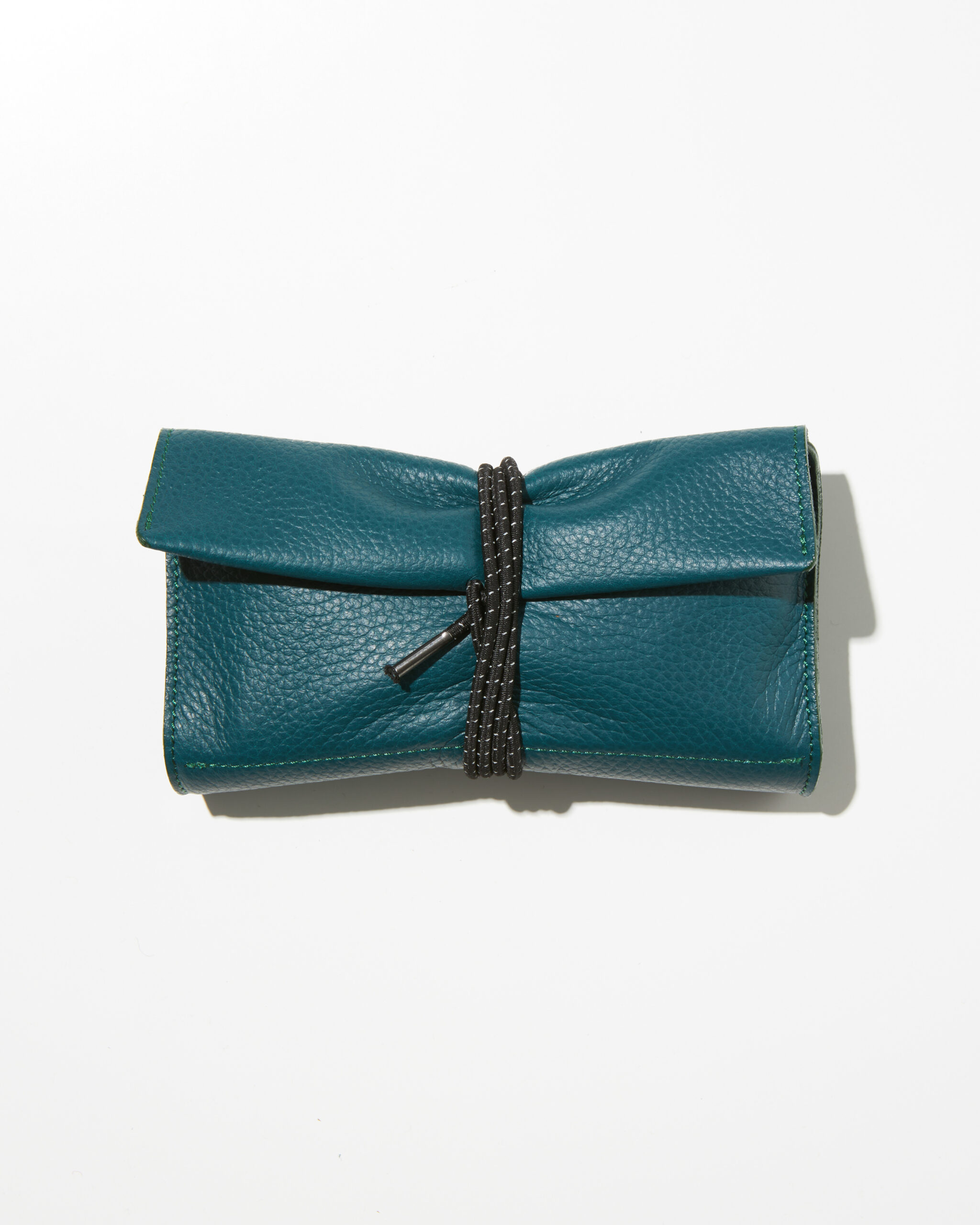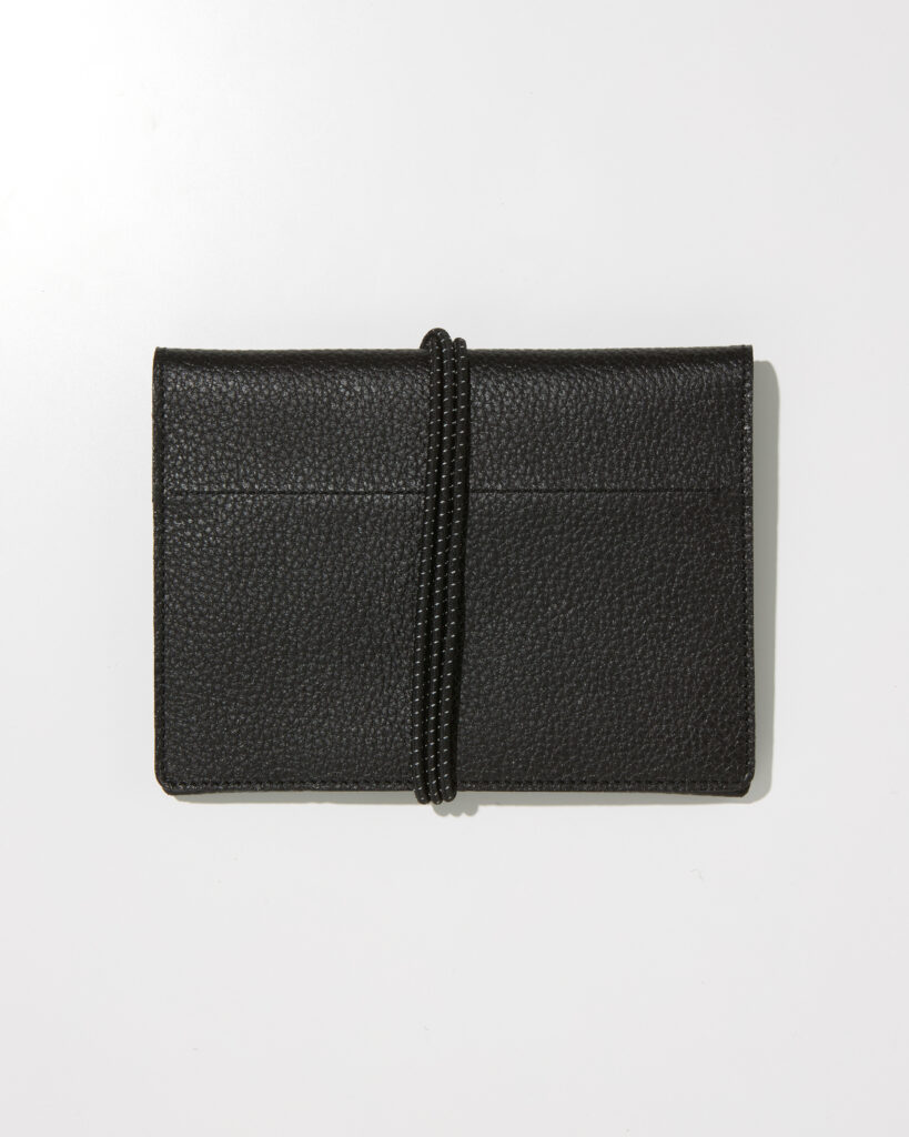 二つ折りを閉じる紐には、先端を金属チップ加工を施したリフレクターゴムコードを装備。