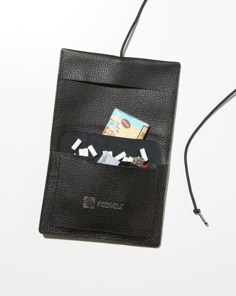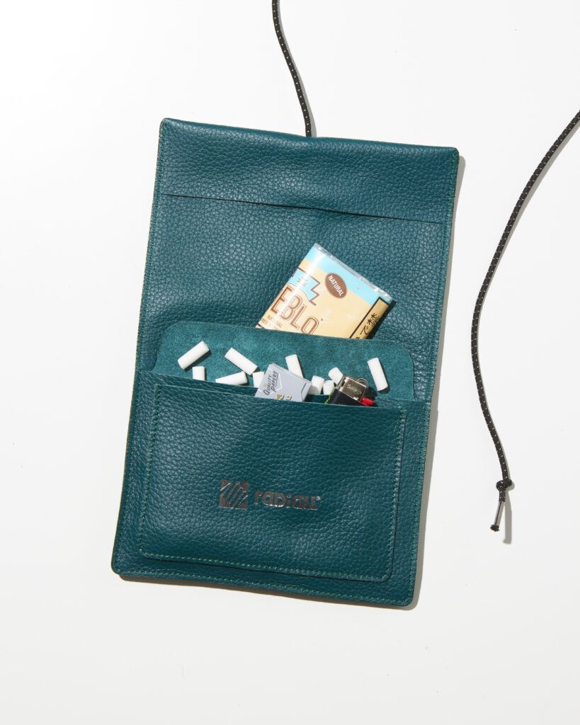 メインポケットが2つあり、奥側はタバコ葉をパッケージそのまま、フラップ付きの手前はフィルターポケットになります。