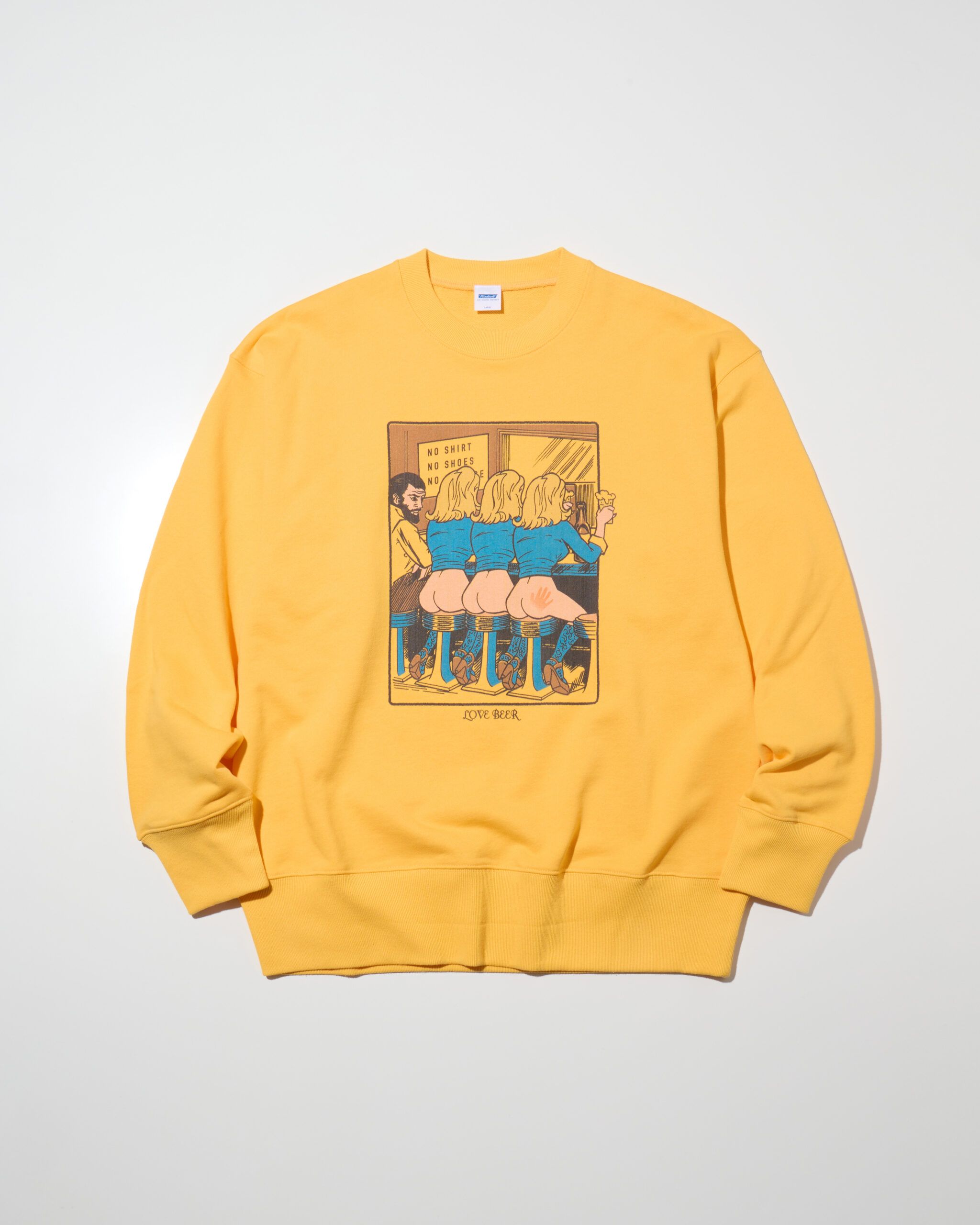 フロントプリントに採用した「LOVE BEER」にちなんで、バックにはBOWTIEロゴのグラフィックをインクジェットプリントで施しています。