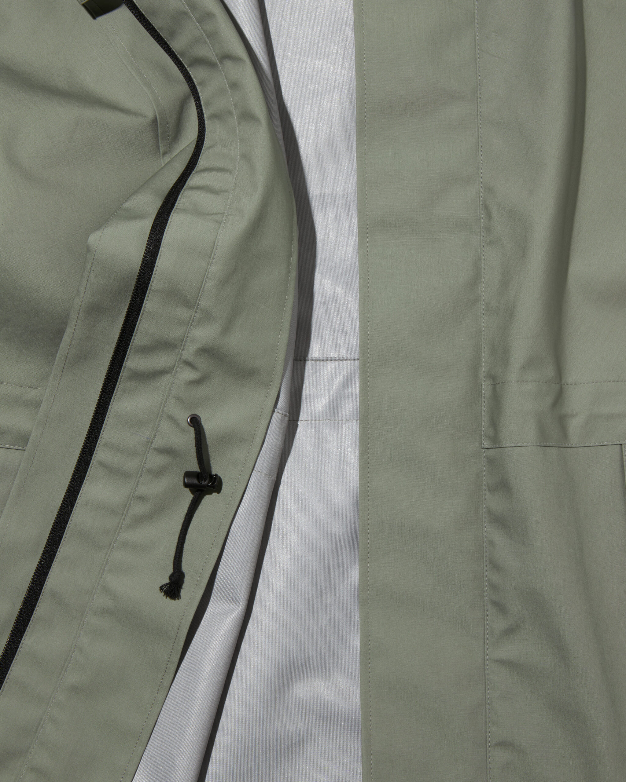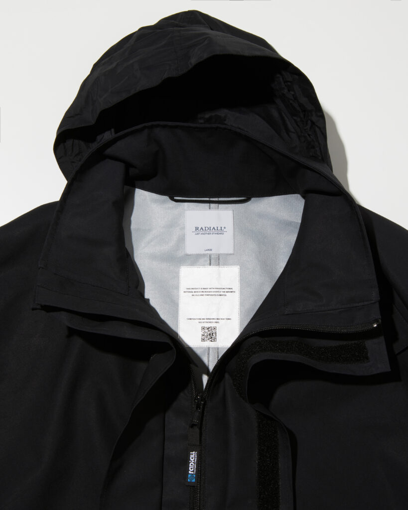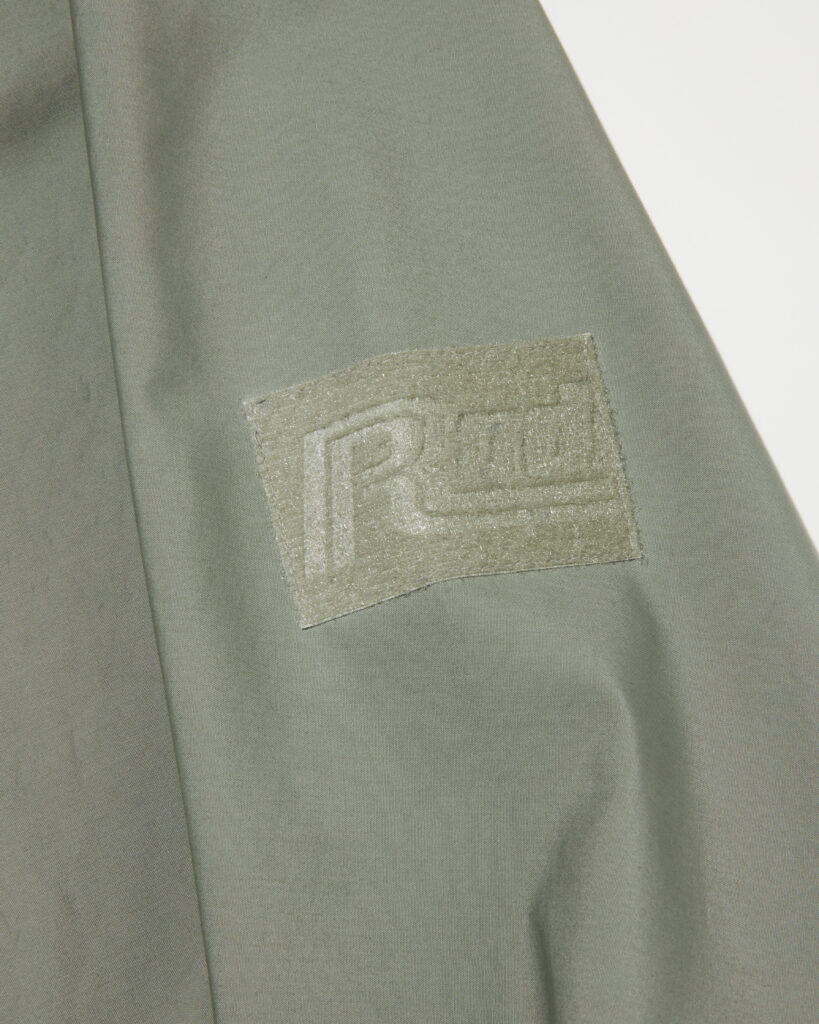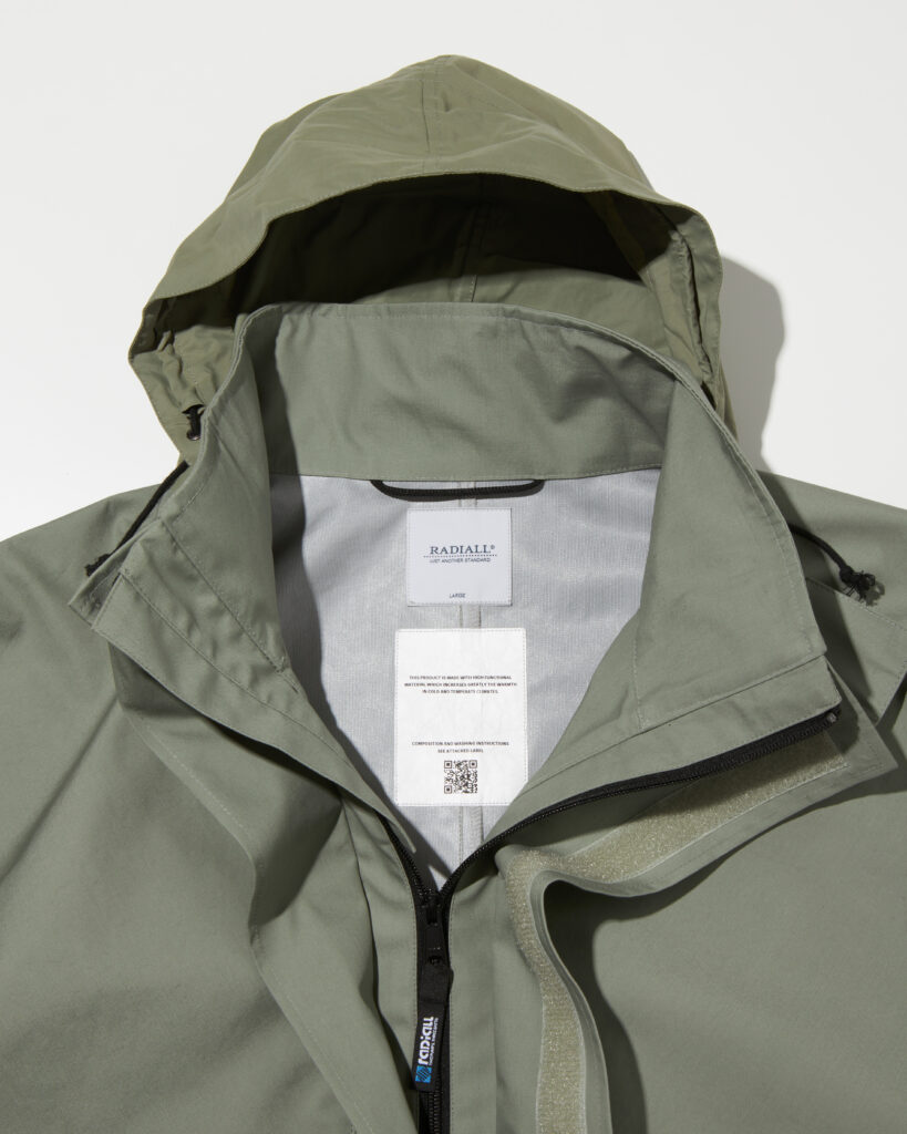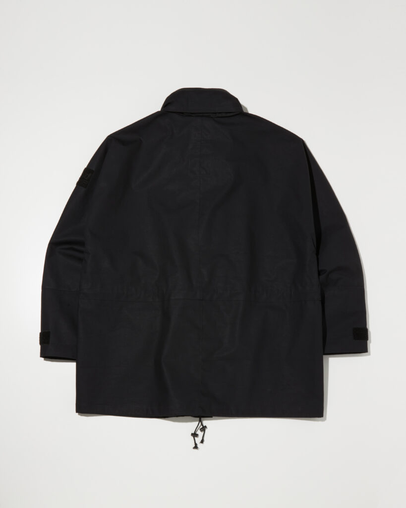 また、アームホールを無くすことで表面を流れ落ちる雨が内部に侵入しにくい縫製仕様を取り入れています。