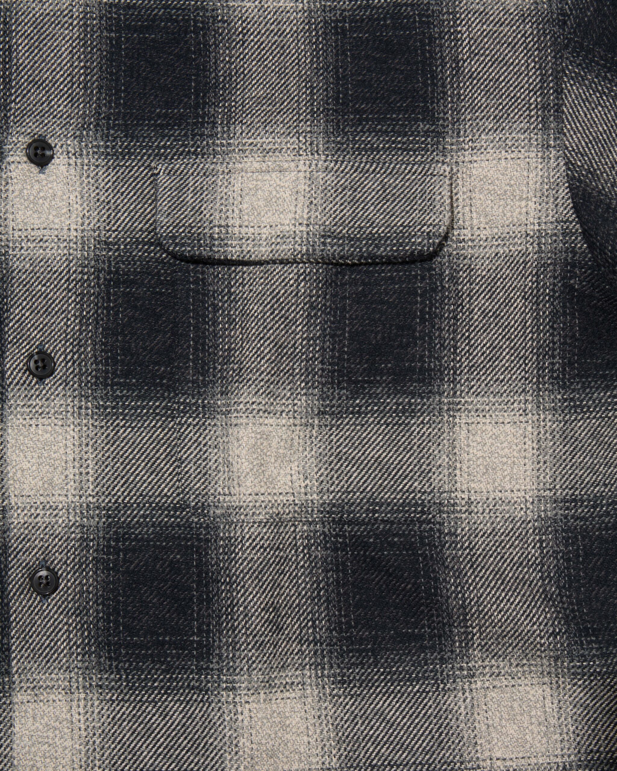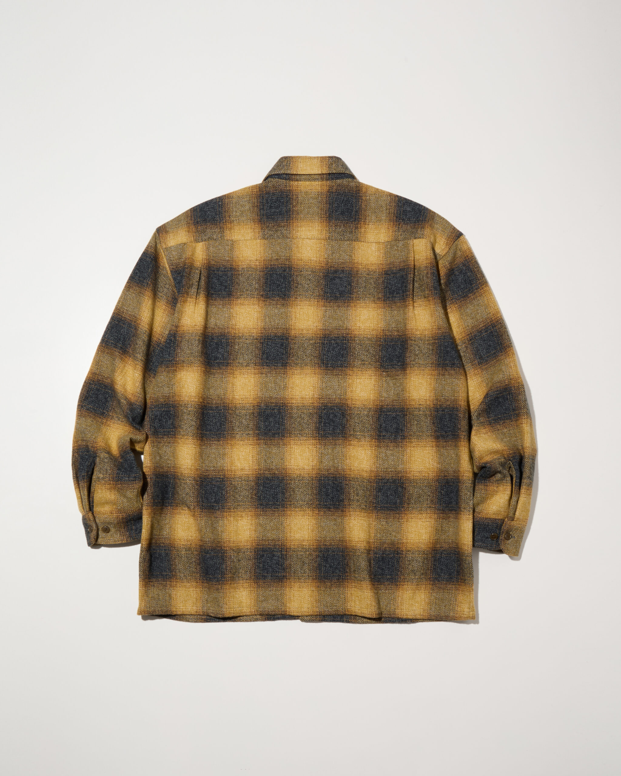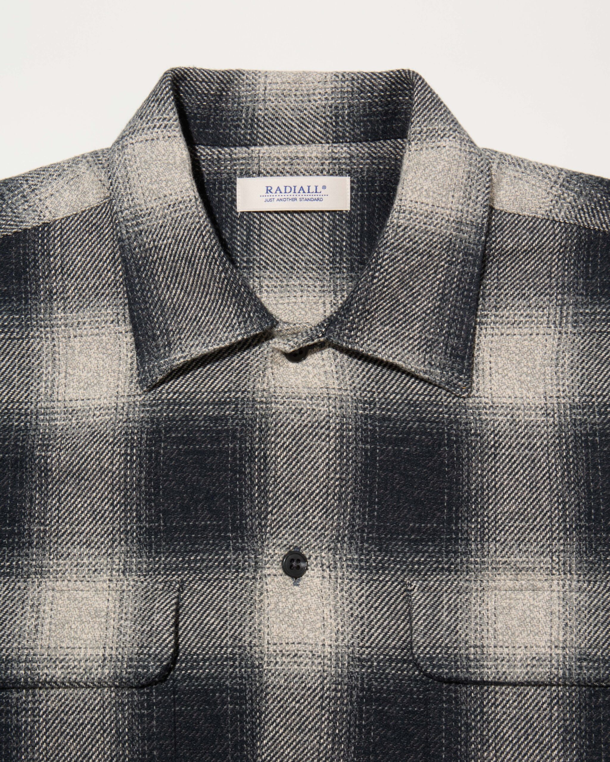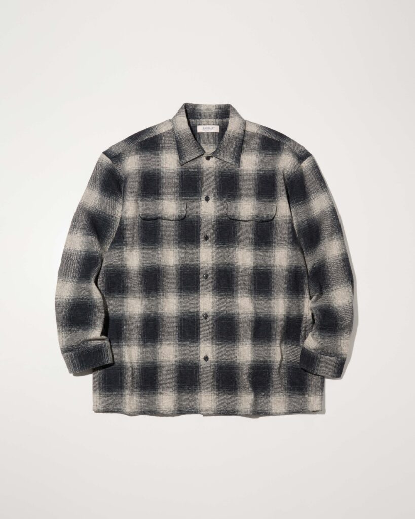 柔らかく、ほどよい生地厚のコットンツイードのオンブレオープンカラーシャツ。