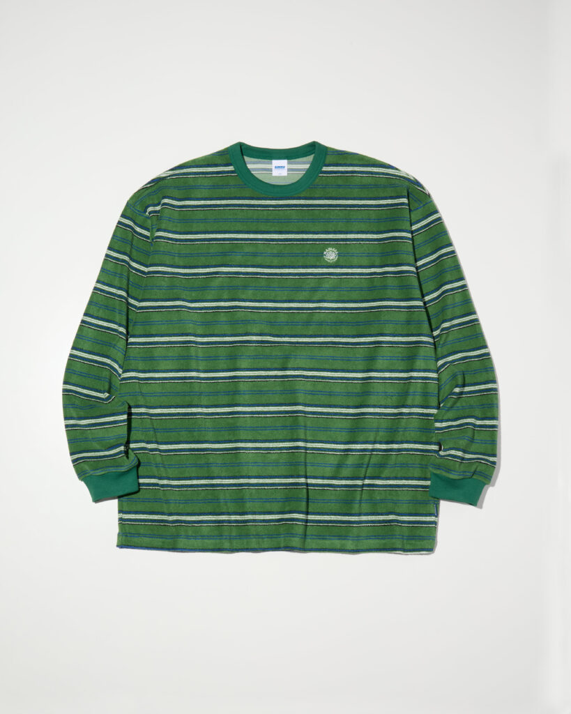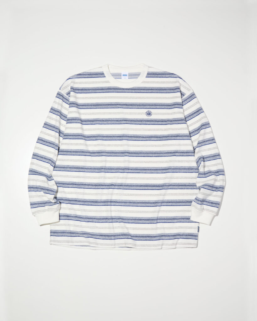 着心地が良くクラシックな西海岸のボードカルチャーのアイコン的素材であるパイルボーダーのロングスリーブTシャツ。