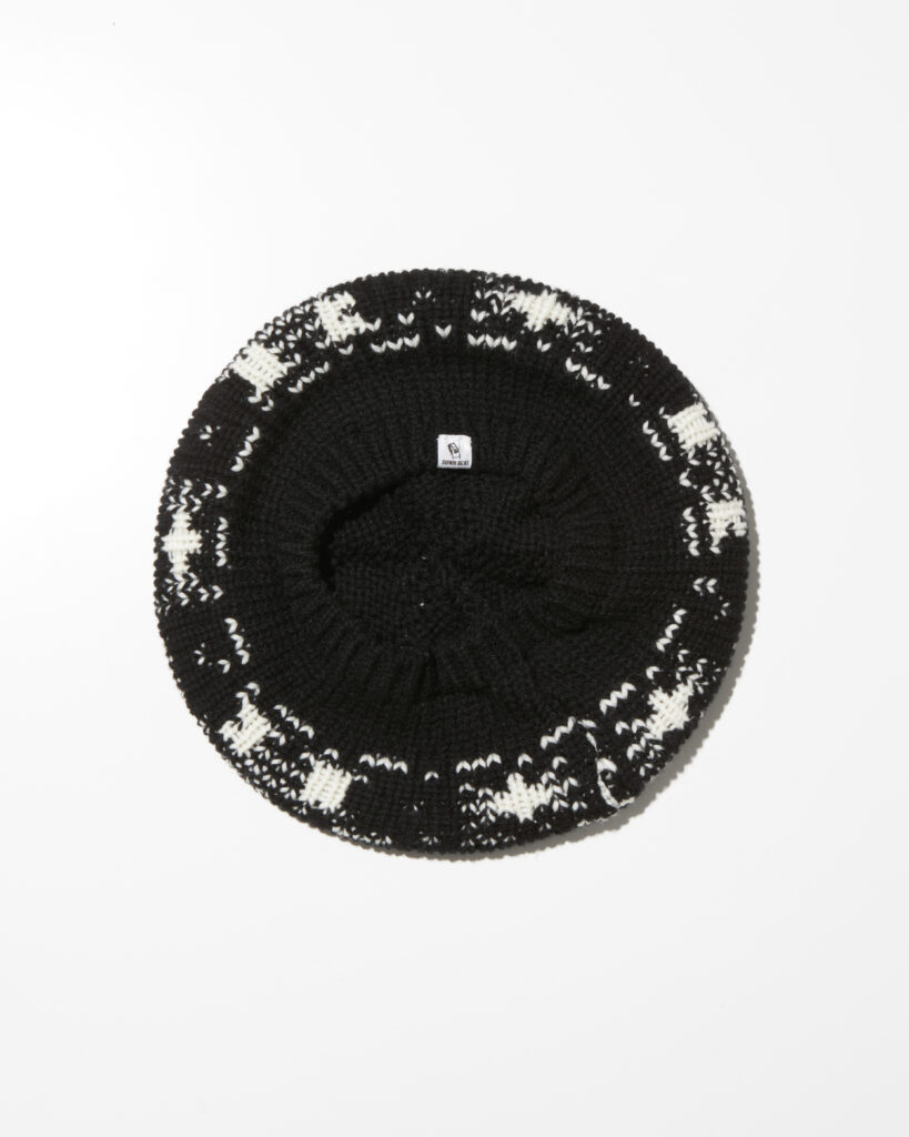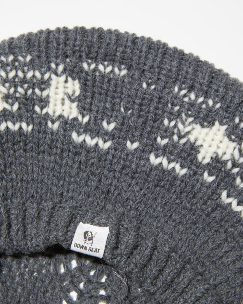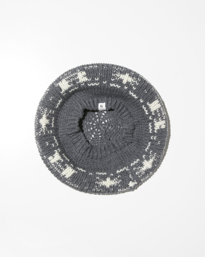 柄はビンテージのノルディックニットをブランド独自の柄にリミックスしたものでブランドロゴや麻柄をボーダージャガードで表現しています。
