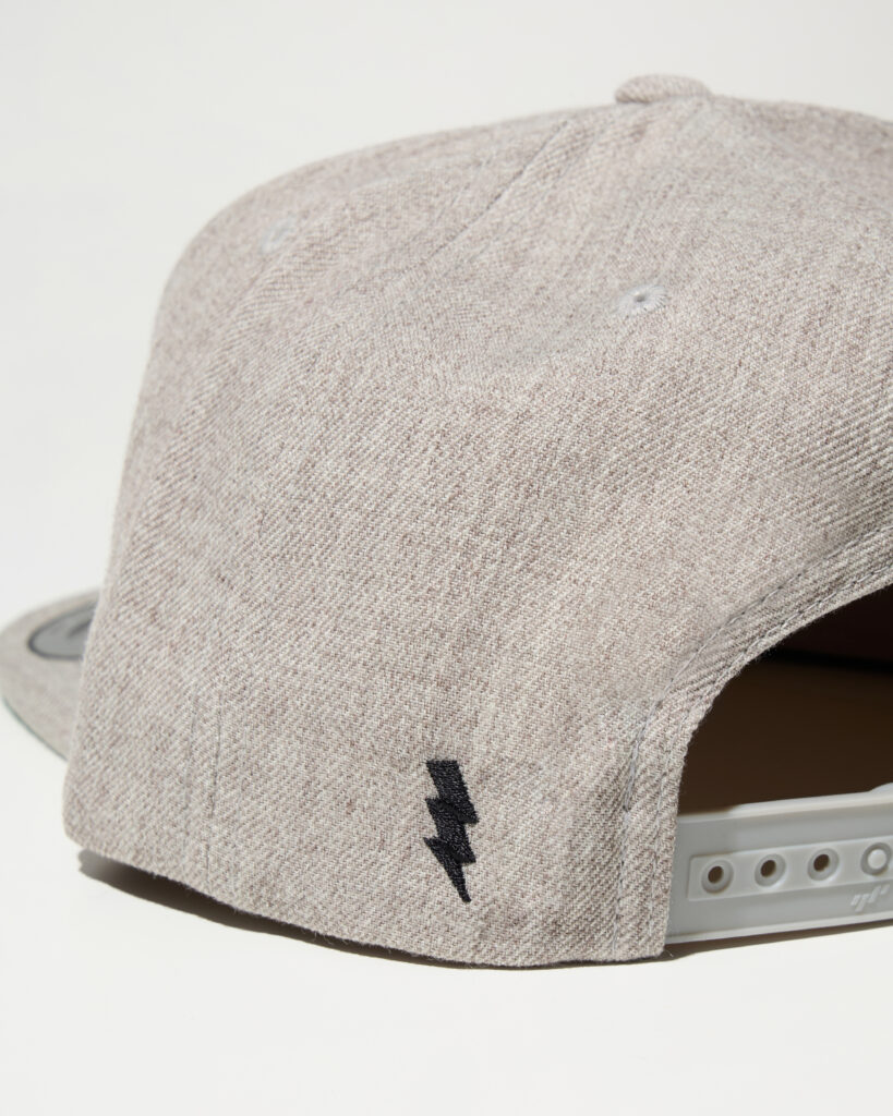 クラウンにはグラフィックのワッペンが入り、バックには刺繍で稲妻が入ります。