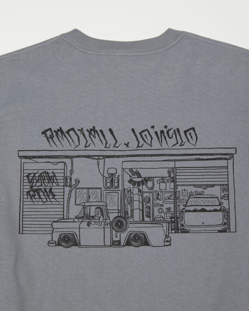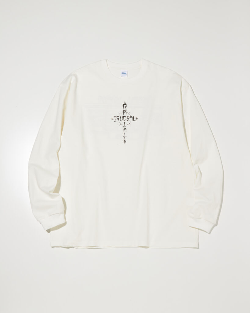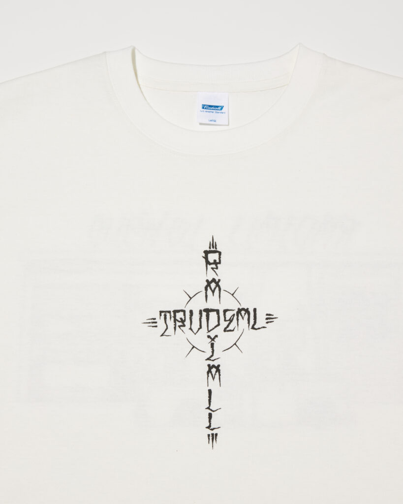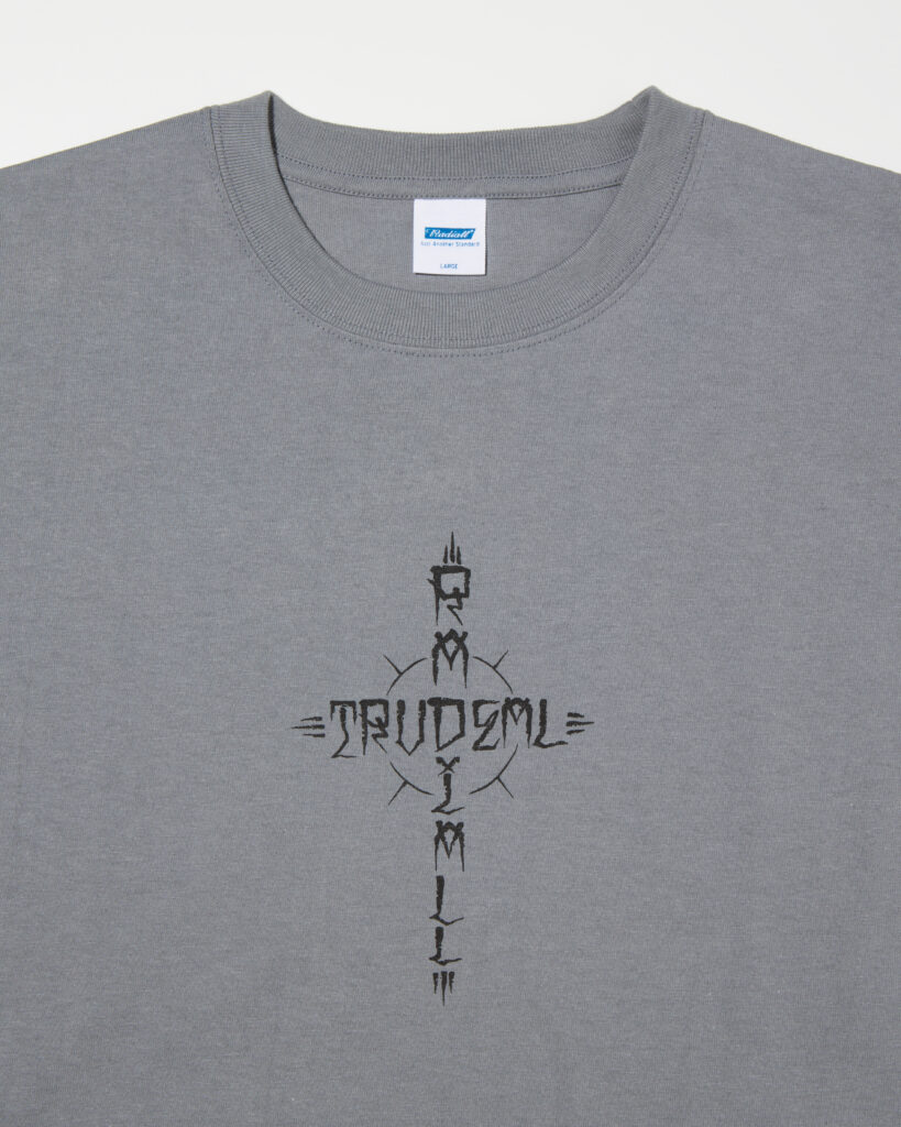 ESOW 氏描き下ろしによるグラフィックをフロントとバックにぼってりとインクを盛らない摺り切りのラバープリントで施しています。