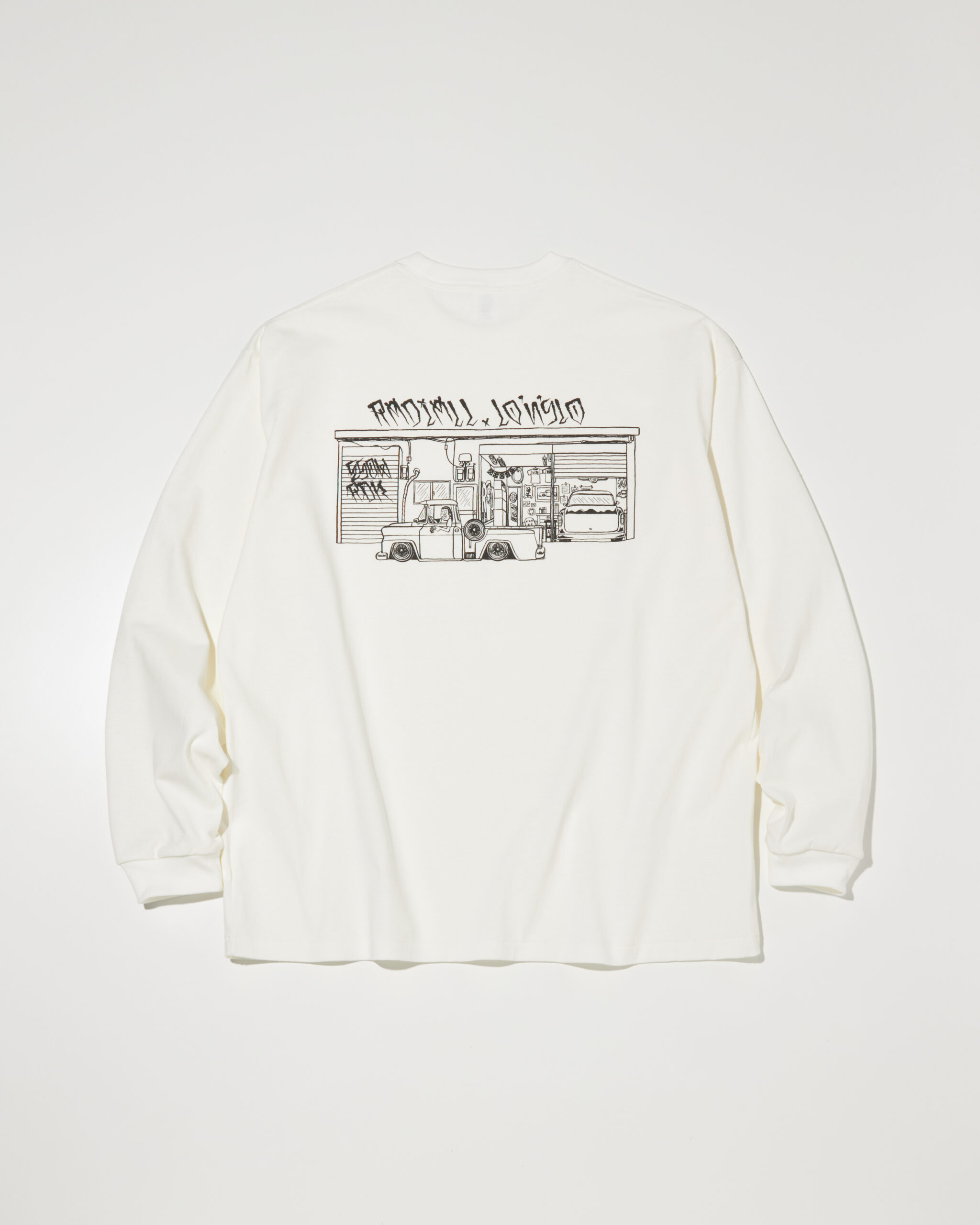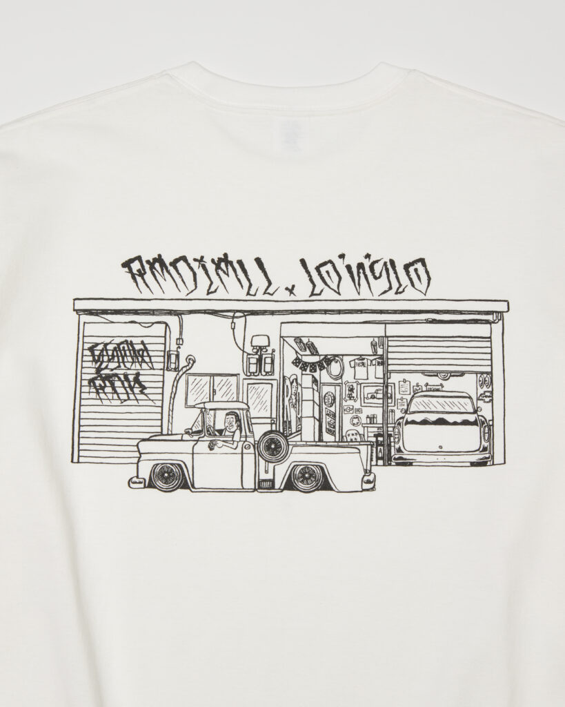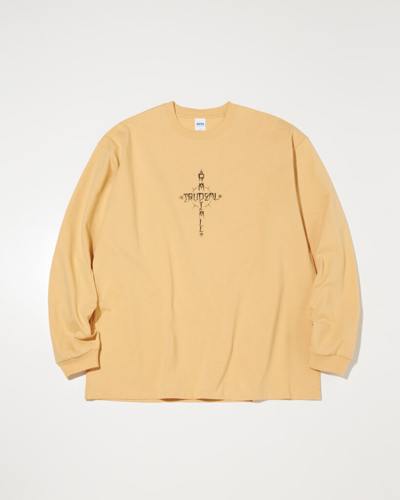 ESOW 氏描き下ろしによるグラフィックをフロントとバックにぼってりとインクを盛らない摺り切りのラバープリントで施しています。